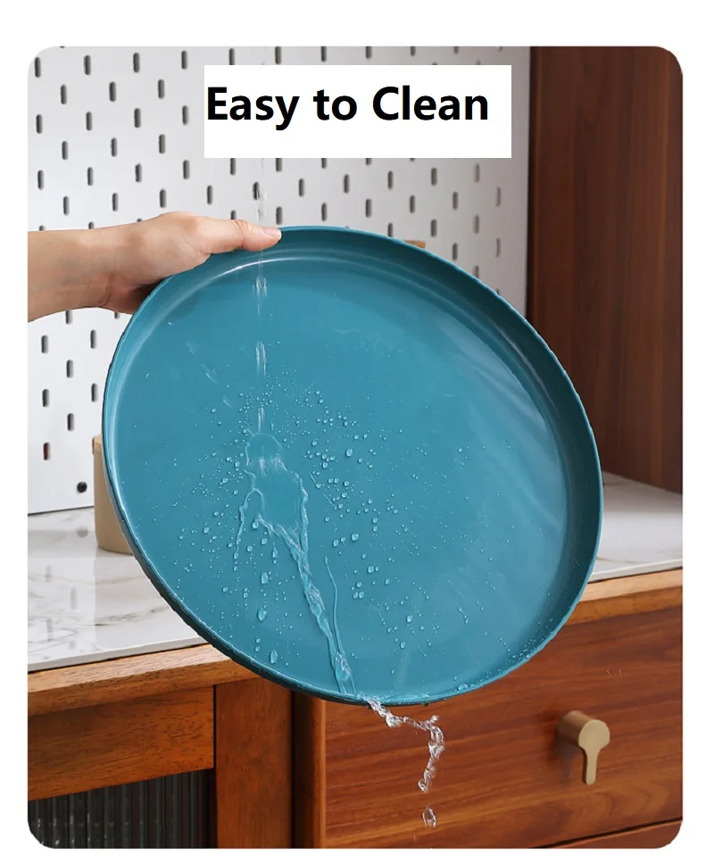 Questi piatti piani sono molto facili da pulire, puoi lavarli con acqua calda e sapone o metterli in lavastoviglie.E funzionano benissimo in forni e microonde senza surriscaldarsi troppo.