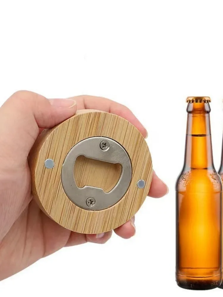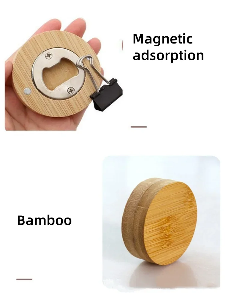 1/5/10/30 pezzi apribottiglie in legno massello rotondo aspirazione magnetica apri birra bar cocktail birra facile da aprire il coperchio gadget strumenti da bar