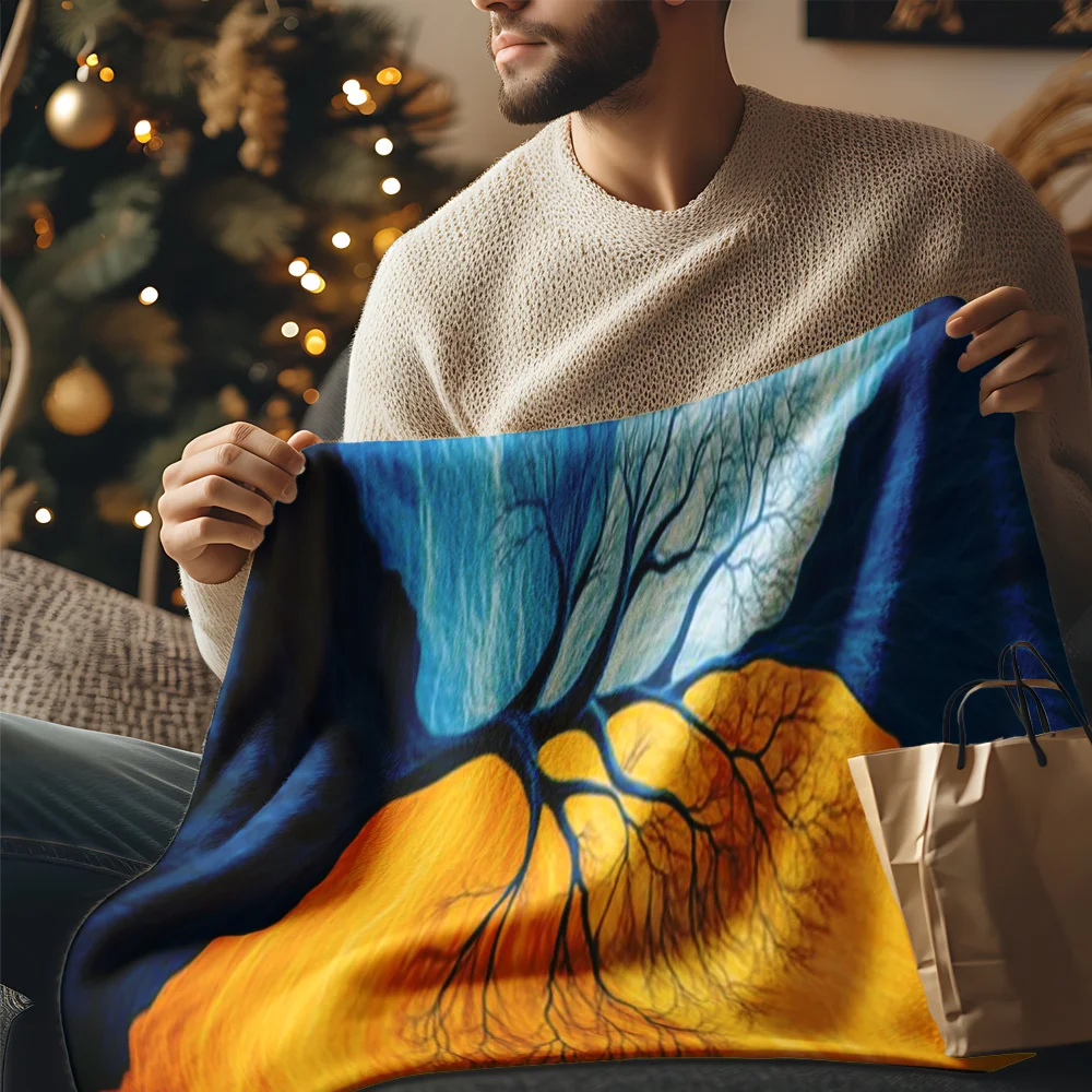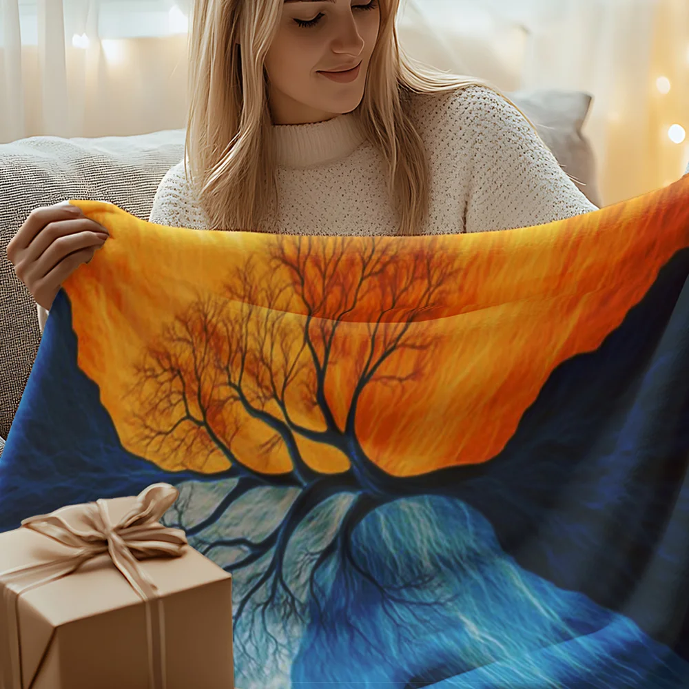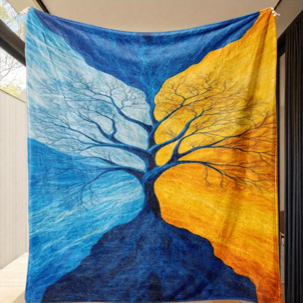 1 coperta in pile artistica bicolore con ombra di albero, dimensioni grandi e soffici, perfetta per la decorazione domestica, divano, auto, ufficio – Esclusiva