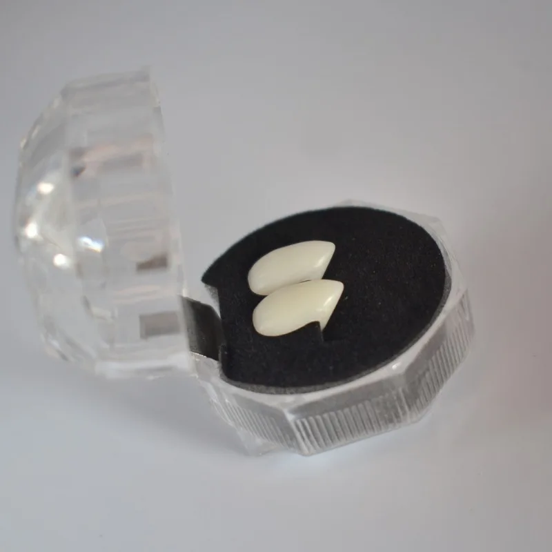 1 paio Denti Zanne Protesi Puntelli Halloween Vampiro Puntelli Cosplay Halloween Party Decor Denti finti Colla solida Protesi adesiva