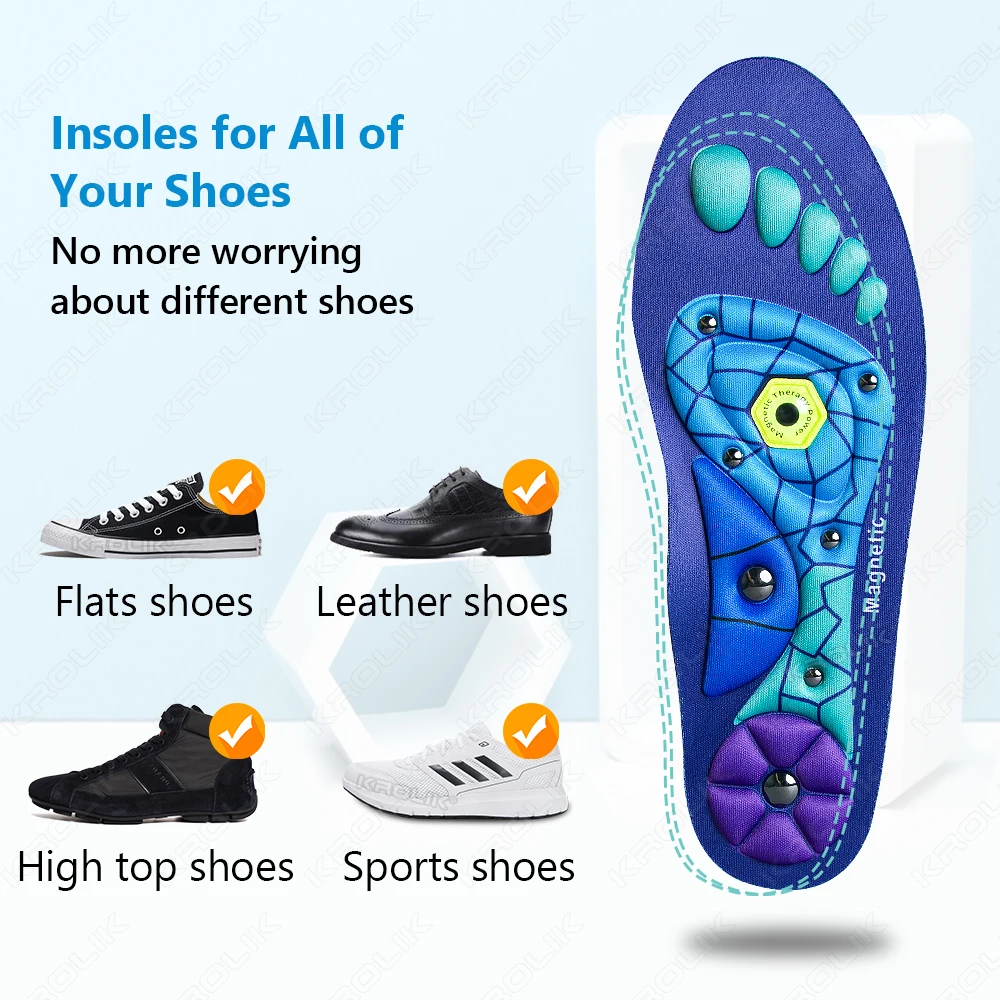 Riflessologia magnetica multistrato: mira i punti di agopuntura chiave per alleviare il dolore e stimolare la circolazione.Supporto per l’arco plantare e assorbimento degli urti – Distribuisce peso uniforme, riducendo il tallone e l’inconforto della sciatica.Antimicrobico e Traspirante – La superficie rivestita in argento mantiene i piedi asciutti e senza odori.Design flessibile – Si adatta a ballerine, scarpe in pelle, scarpe sportive e stivali alti.
