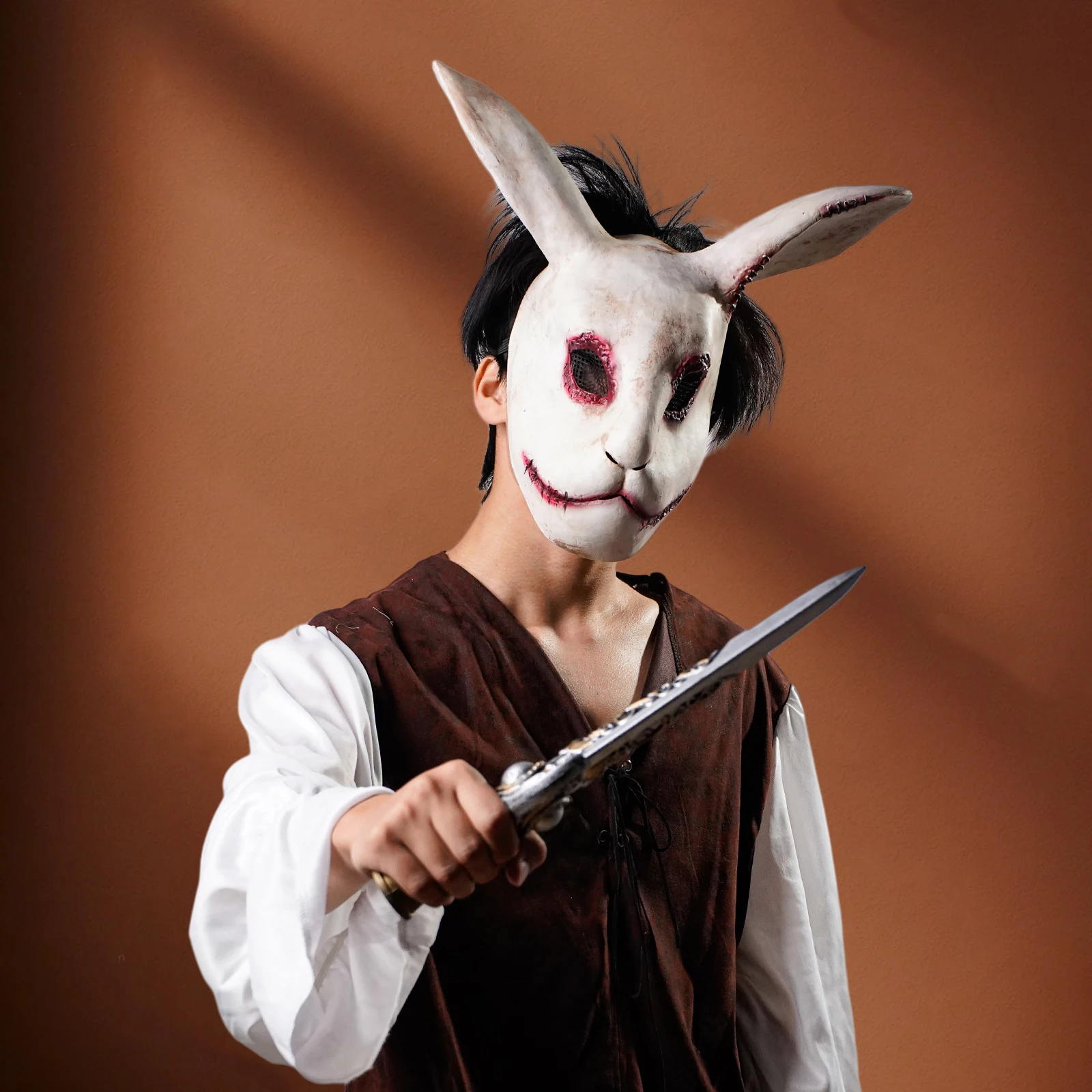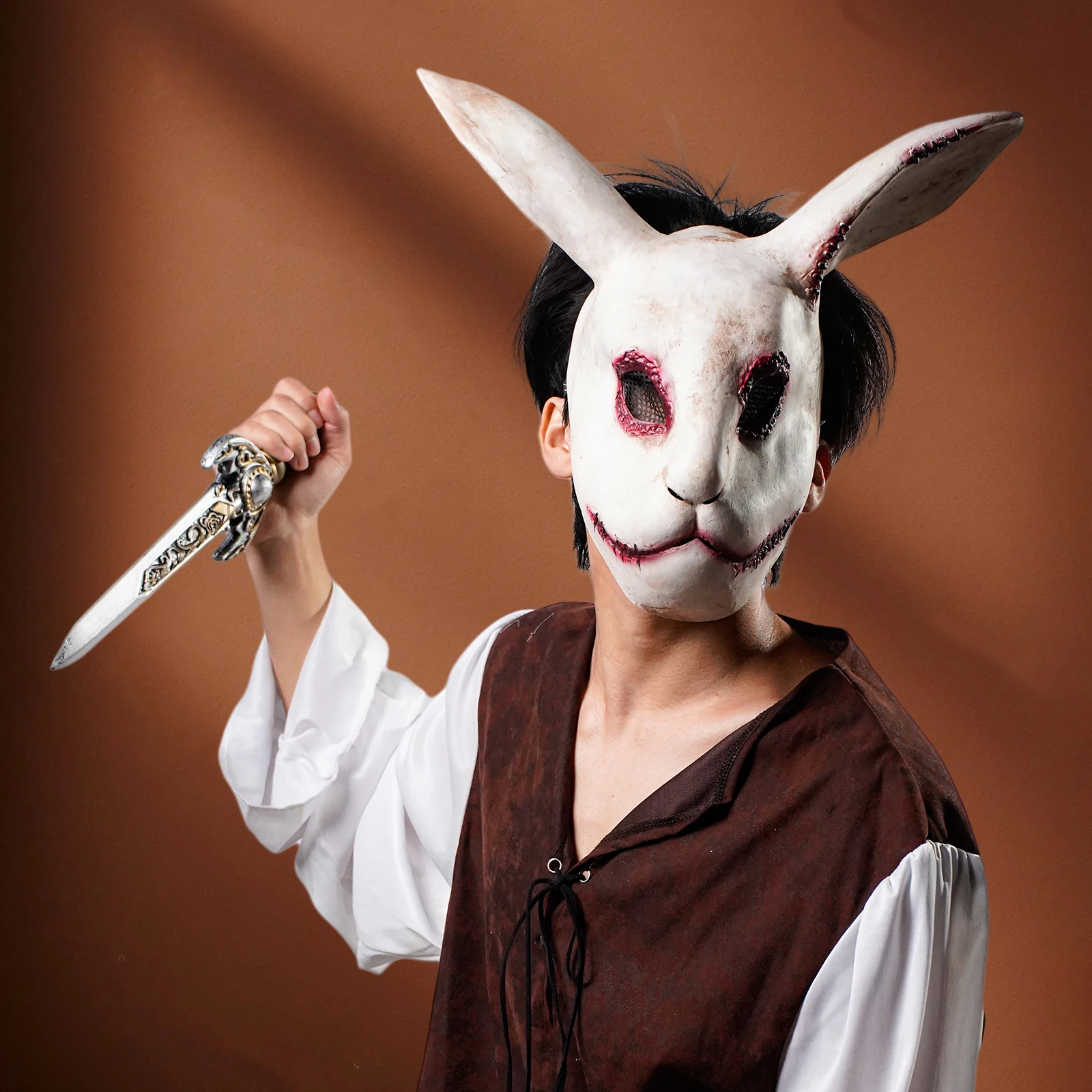 1 pezzo di maschera da coniglio spaventoso costume di Halloween maschera in lattice festa di festa