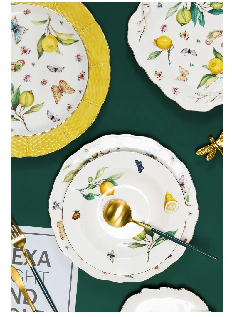1 pezzo di tazza da caffè al limone, elegante set da tè europeo, tazza da tè europea e piattino, piatto in ceramica selezionata