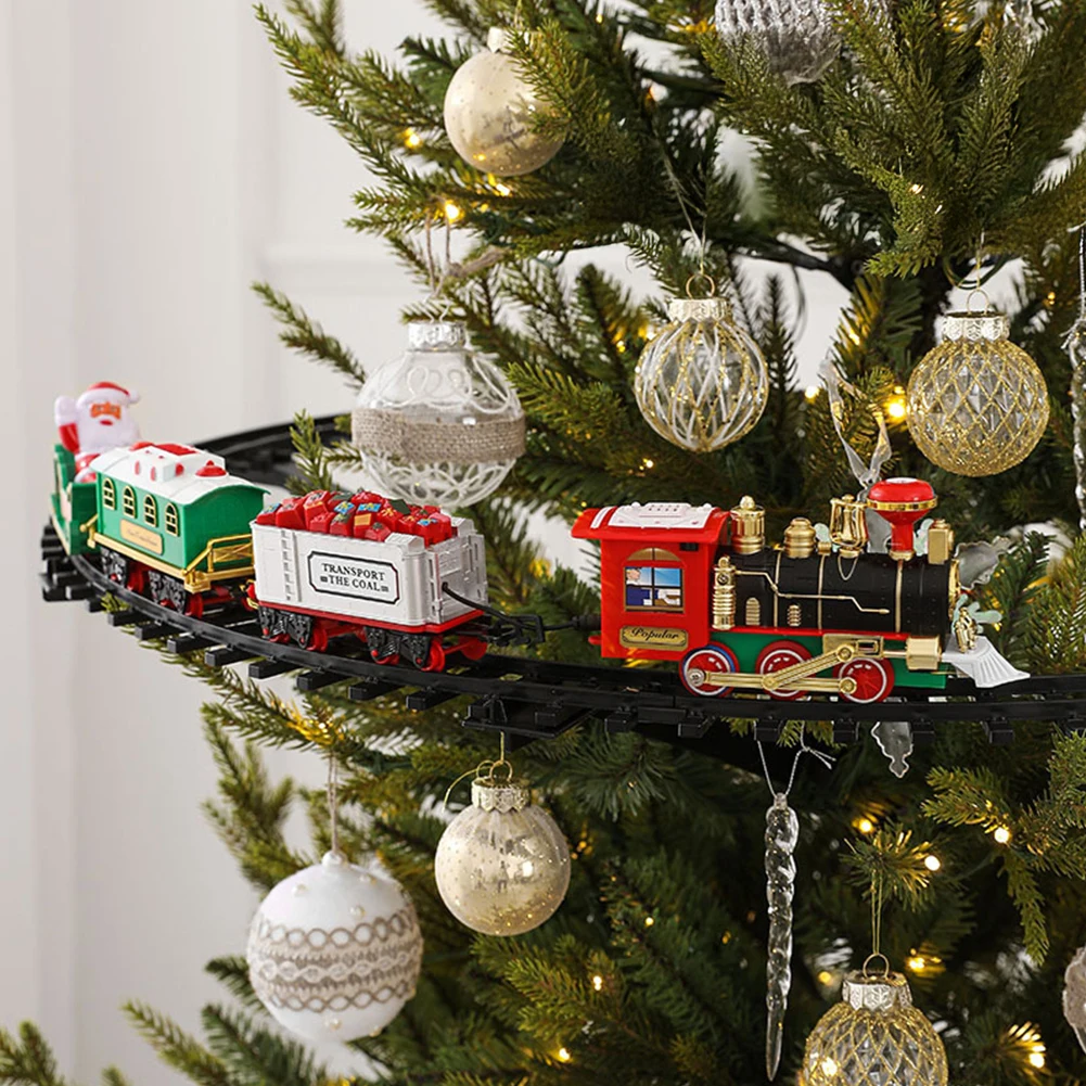 1 pezzo set di treni di Babbo Natale regalo per bambini treno di Natale a LED accessori per la decorazione dell’albero di Natale pista piccolo treno con musica