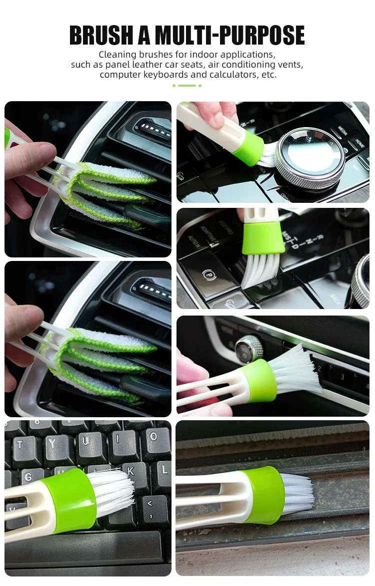 2pcs Spazzola di pulizia multifunzionale per auto interni aria Conditio Outlet Crevice Spazzole di rimozione della polvere Ufficio casa strumenti spazzola pulita