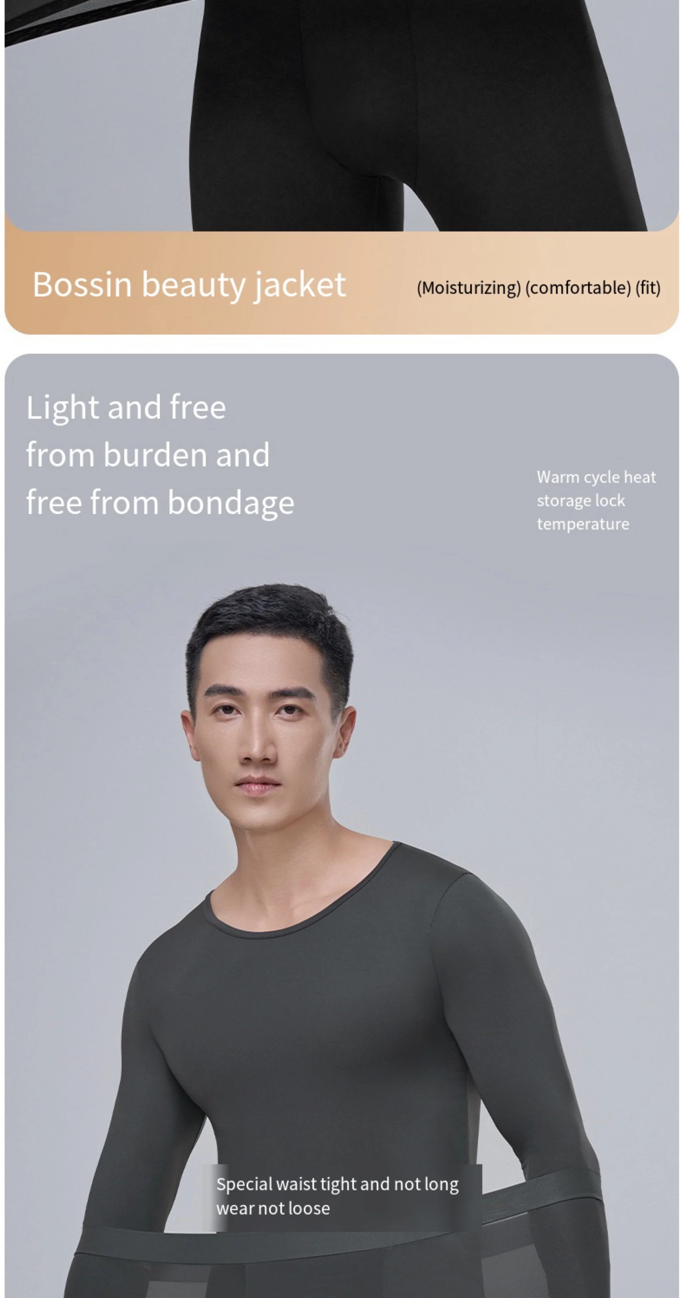 1 pz biancheria intima termica ultrasottile da uomo alta elasticità taglie forti temperatura costante senza cuciture manica lunga che tocca il fondo