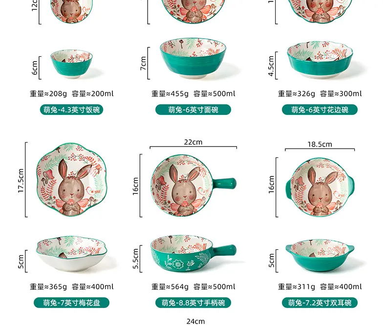 1 pz/simpatico coniglio dipinto a mano ciotola e piatto sottosmalto ciotola di zuppa di ceramica per uso domestico commerciale hotel noodle bowl insalatiera di frutta Informazioni sull’articolo: Condizione: 100% nuovo di zecca Prodotto: ciotole e piatti Materiale: ceramica Scena: famiglia/ristorante occidentale Il pacchetto include: 1 pezzo Note: 1. 2. A causa della differenza di luce e schermo, il colore dell’articolo potrebbe essere leggermente diverso dall’immagine. Grazie per la tua intelligenza. 3. Come è necessario la misurazione manuale, si prega di consentire una differenza di 1-2 cm.