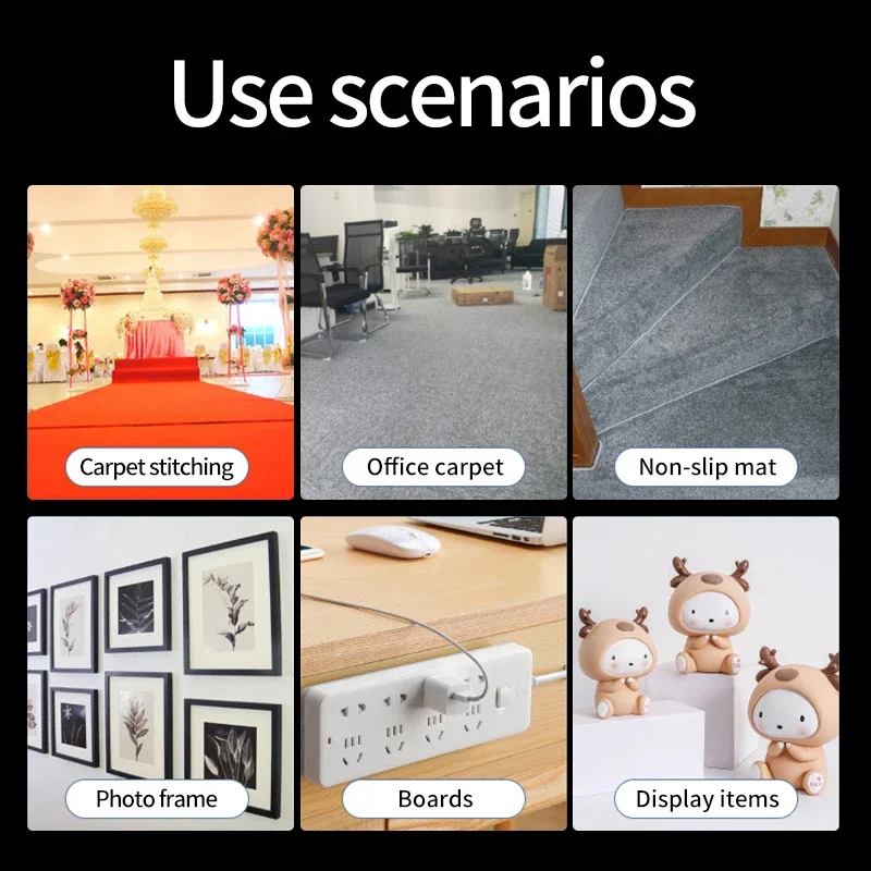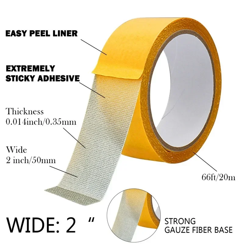 Pellicola in tessuto biadesivo, resistente, ad alta adesione, morbida, tensione costante.I prodotti sono ampiamente utilizzati, tutti i tipi di giunzioni di tappeti fisse, pasta di distici del Festival di Primavera, palloncini luminosi fissi, uso domestico (come presa fissa, cornice fissa, ciondolo fisso, ecc.).