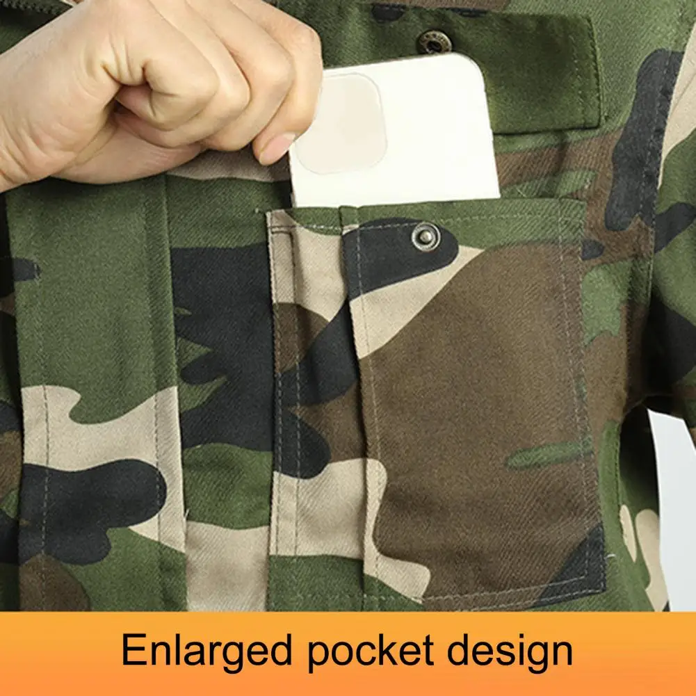 Con le caratteristiche di resistenza allo sporco e resistenza all’usura, questo set di abiti da lavoro è molto resistente al lavaggio e all’usura. Dotato di un design con stampa mimetica, questo abito da lavoro a maniche lunghe è molto alla moda e popolare, ti rende più bello e fresco.
