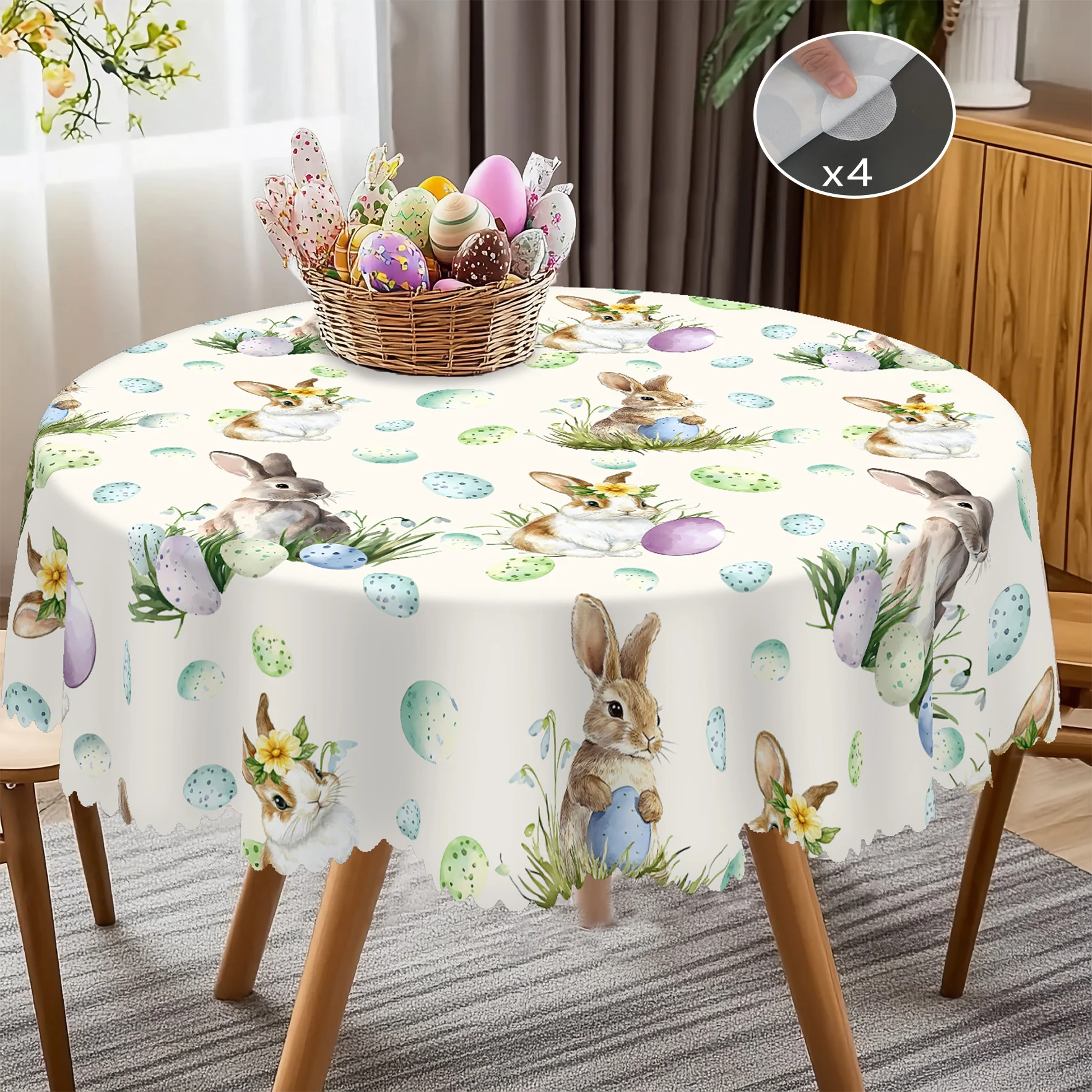 1 Tovaglia rotonda pasquale, 5 misure disponibili, Tovaglia con stampa di uova di coniglietto pasquale, Processo di goffratura dei bordi, Decorazione pasquale, Decorazione della tovaglia del giardino primaverile, Tovaglia per la cucina domestica quotidiana, Uso del terrazza