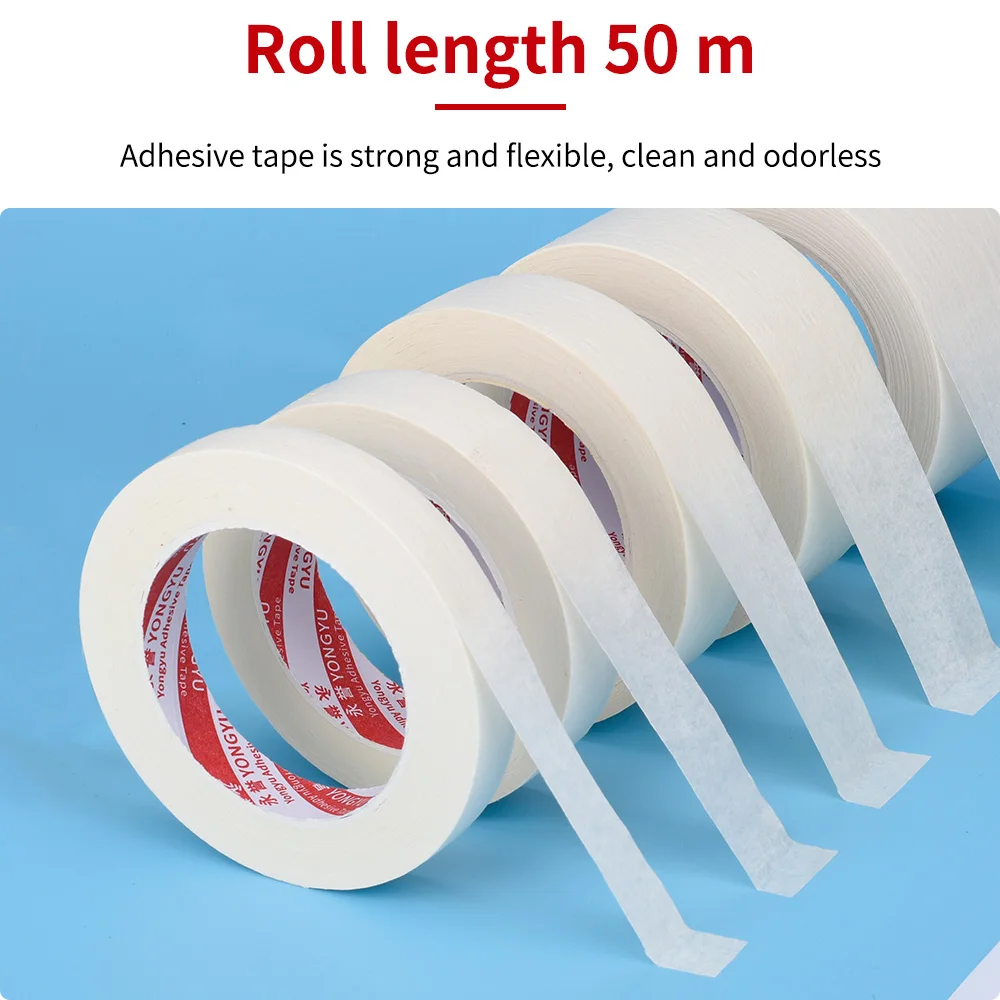 Il buon potere di tenuta per aiutare a resistere al sollevamento o alla curvatura, un trattamento speciale contro la schiena fornisce un facile da usare, controllato e riavvolgimento.Nastro per mascheratura per uso generale per casa e ufficio, buono per artigianato, creazione di etichette, fissaggio di oggetti leggeri, pittura.