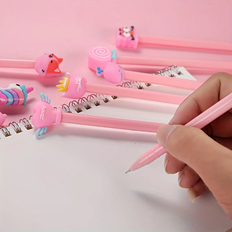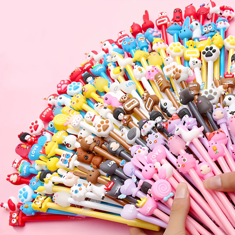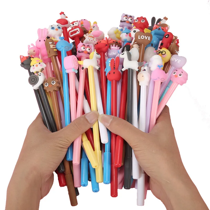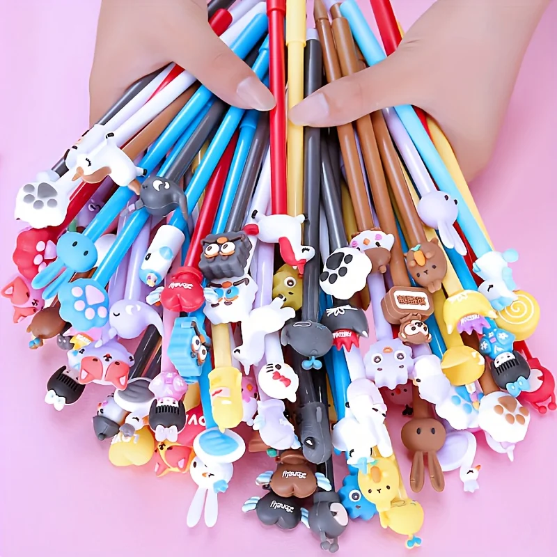 10/50/100 pezzi Penne a sfera carine Penne gel per scrittura liscia con tappi creativi per cartoni animati per forniture di cancelleria per ufficio e studio