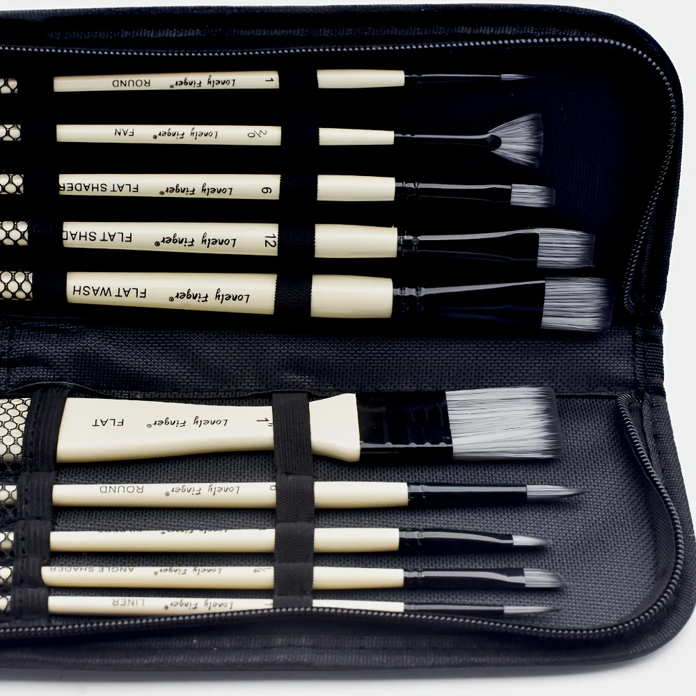 10 pennelli professionali sintetici per artisti con custodia, per pittura acrilica, acquerello e guazzoDisponibilità: 8 disponibili