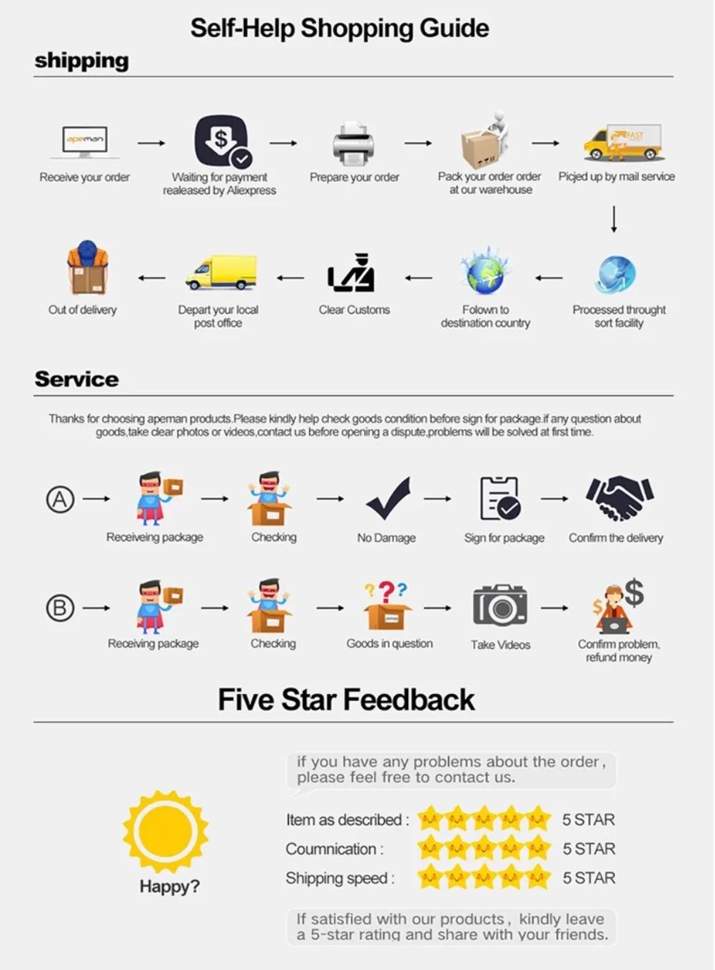 Si prega di lasciare revisione 5 stelle se hai soddisfatto con i nostri prodotti e il servizio, che apprezzerà