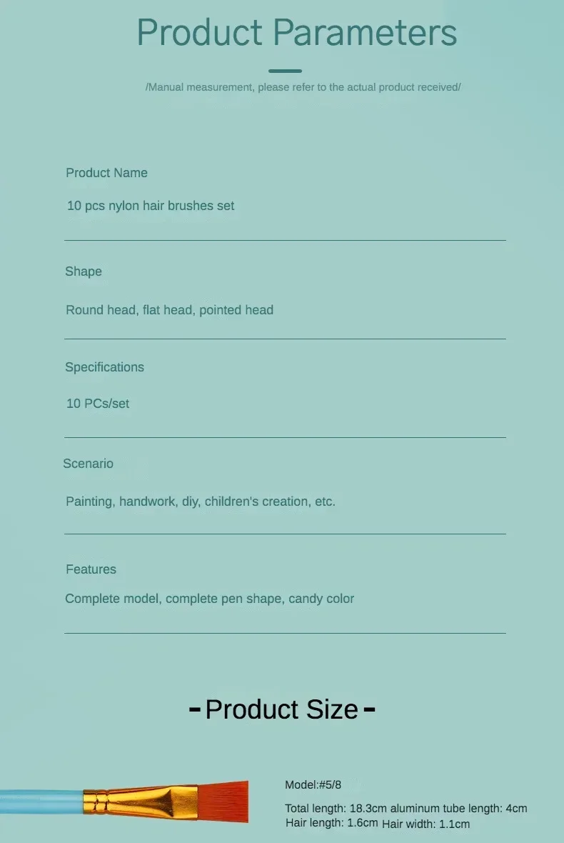 Presentazione del nostro set di 10 pennelli multifunzionali, perfetti per tutte le tue esigenze di pittura! Realizzato con setole in nylon di alta qualità per tratti lisci e applicazioni facili, questi pennelli vengono in un splendido manico in plastica blu perlato con un set di setole colorate. Ideale per acquerello, pittura a olio o rivestimento a gancio, questo set di pennelli è versatile e perfetto per tutti gli appassionati d’arte. La dimensione compatta dei pennelli rende facile da riporre e trasporti. Con questo set, hai tutte le attrezzi che devi creare bellissimi pezzi d’arte. Ordina il tuo set di 10 pennelli oggi e libera la tua creatività!