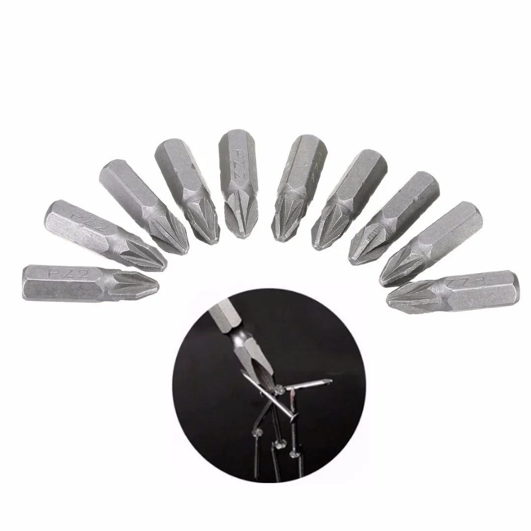 10 pz Pozi 2 PZ2 Punte per cacciavite esagonale Punta per cacciavite con azionamento a nastro 25mm per utensili elettrici