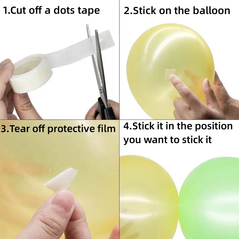 1.Punti adesivi biadesivi per palloncini: utilizzando i nostri punti adesivi, puoi rimuovere completamente la tradizionale colla liquida o nastro.