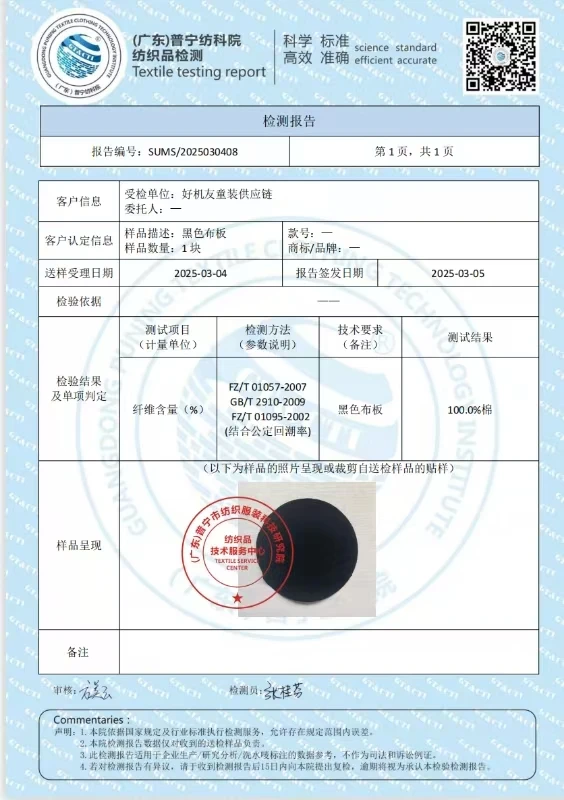 Rapporto di test dei materiali della maglietta: