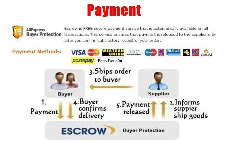 Prima di ordinare, contattaci per ricevere il metodo di spedizione preferito, gli articoli vengono spediti solo dopo che il pagamento è stato confermato da Escrow