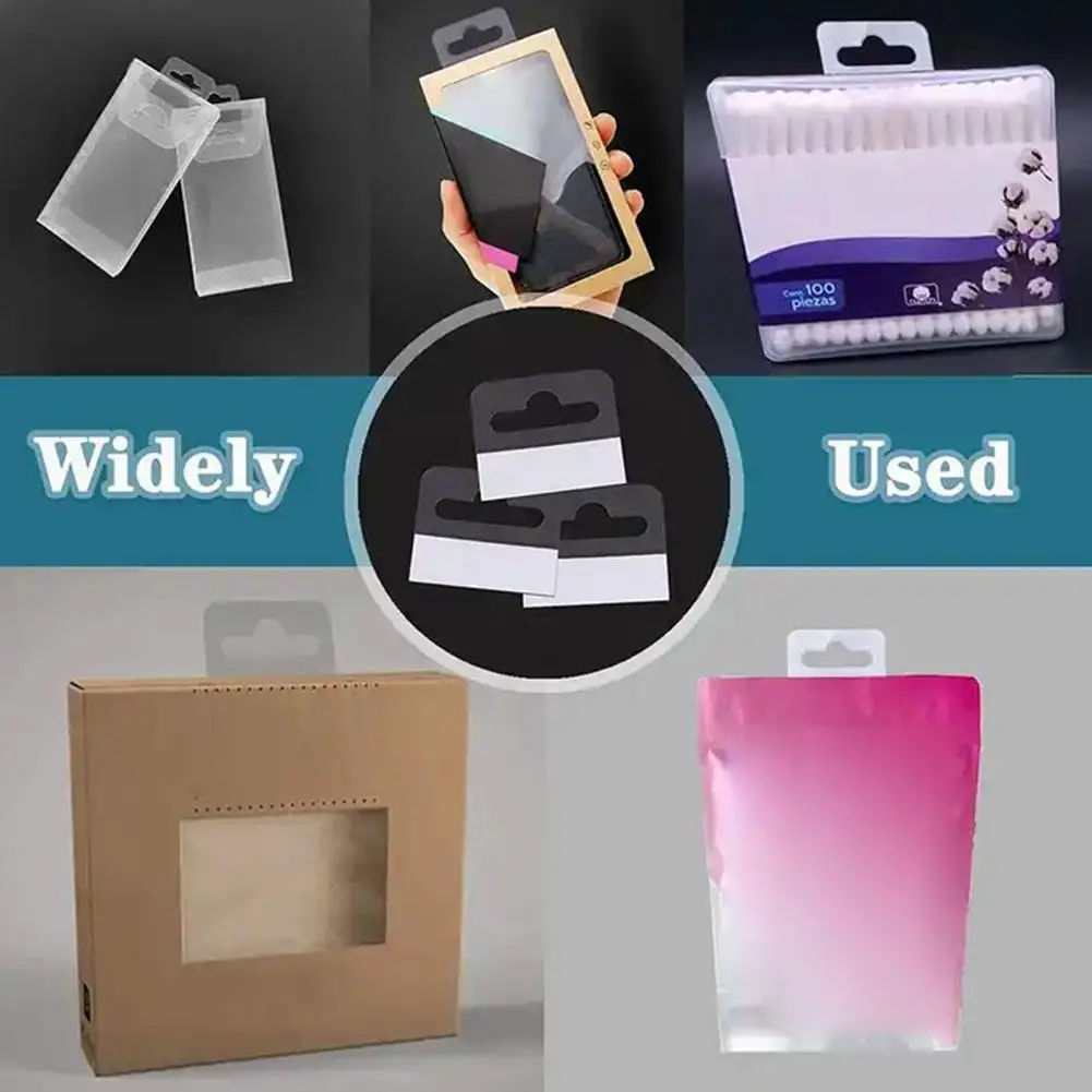 100pcs Hang Tabs cartellini con foro tondo etichette autoadesive per Display per impieghi gravosi di rinforzo per espositori al dettaglio appesi