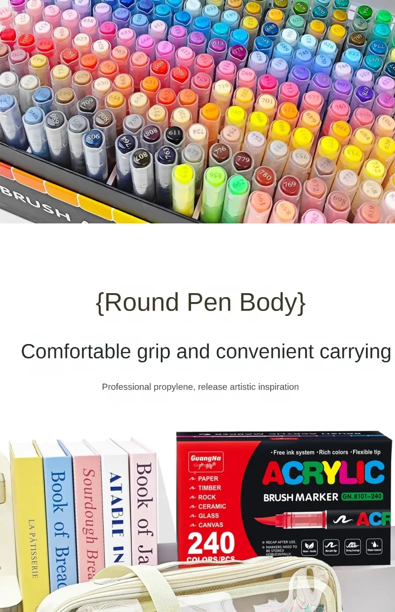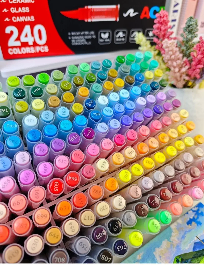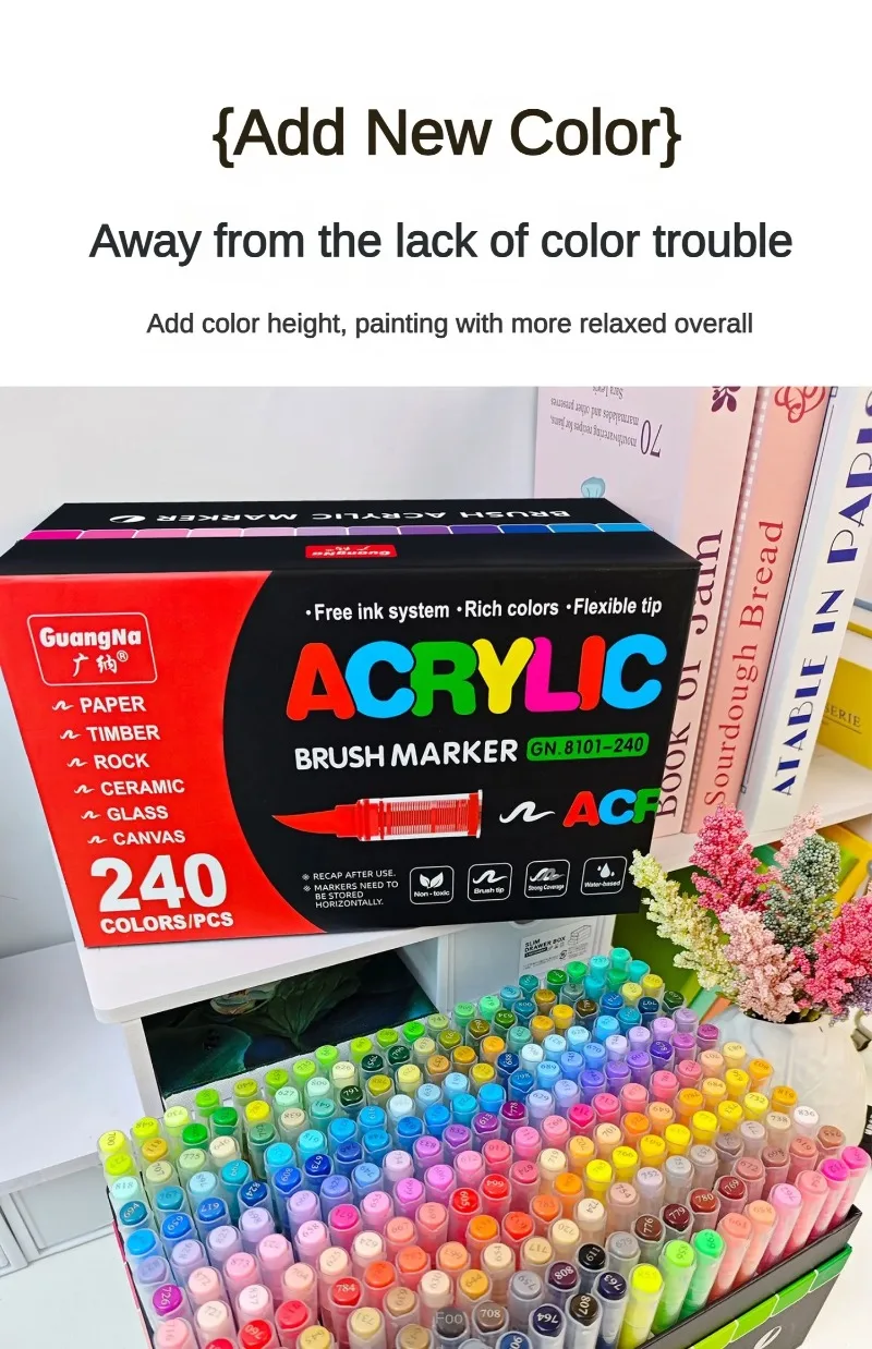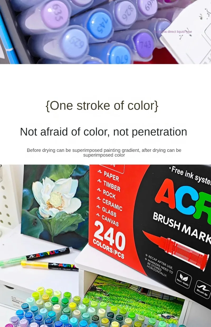 240-12 Colors Direct-liquid Acrylic Marker Waterproof Soft Brush Tip Color Layering Pen for Metal Glass Art Supplies Stationary