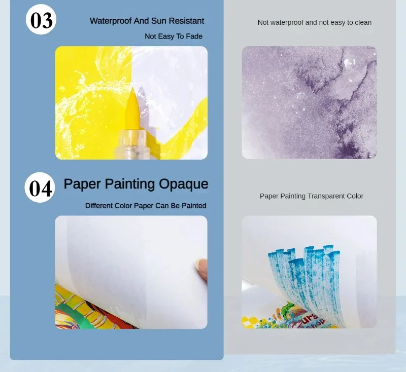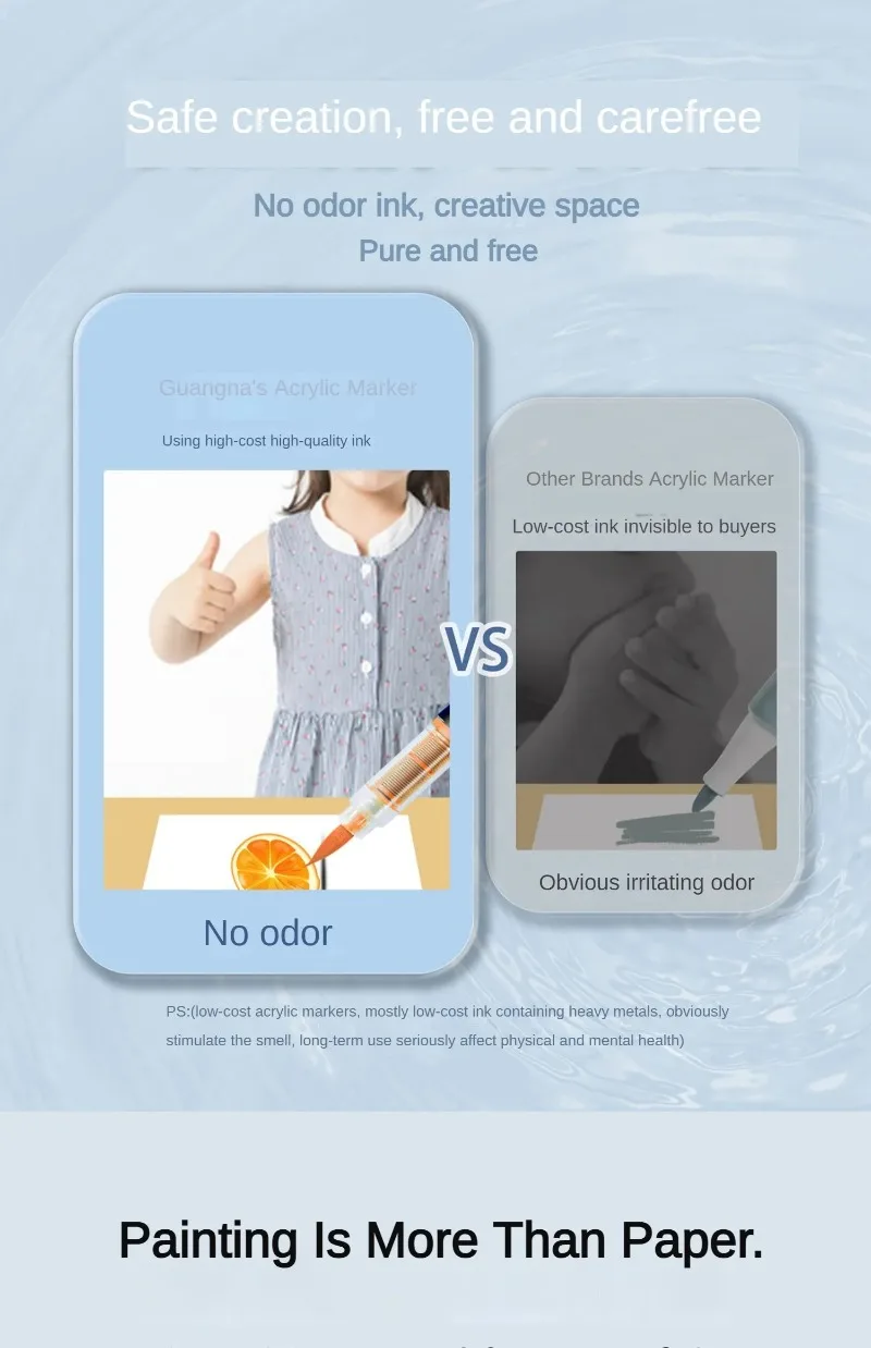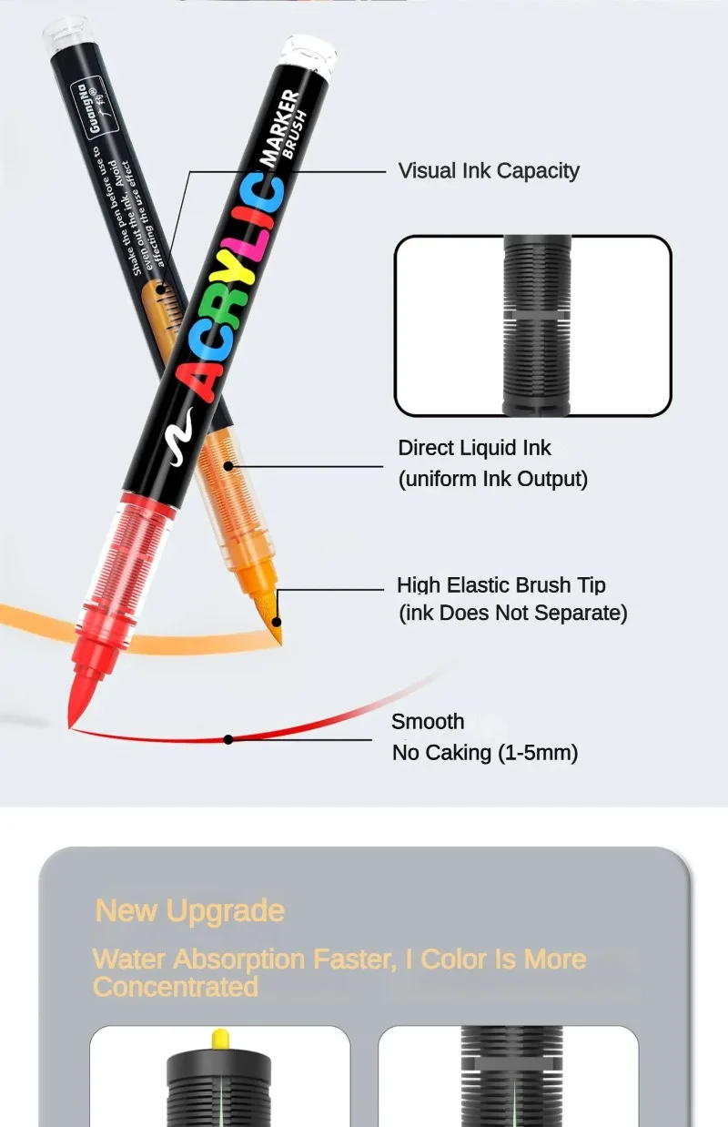 【Professional-Grade Acrylic Ink】: Utilizing professional-grade acrylic ink, the markers produce vivid and saturated colors with strong coverage, allowing for seamless layering and blending.