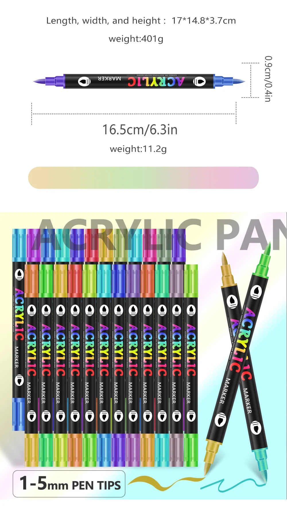 Design bicolore per doppia creatività: ogni pennarello a vernice acrilica presenta doppie punte della stessa dimensione ma in colori diversi, offrendo due tonalità in una penna. Perfetto per dipingere, scarabocchiare e progettare, consente infinite combinazioni creative.