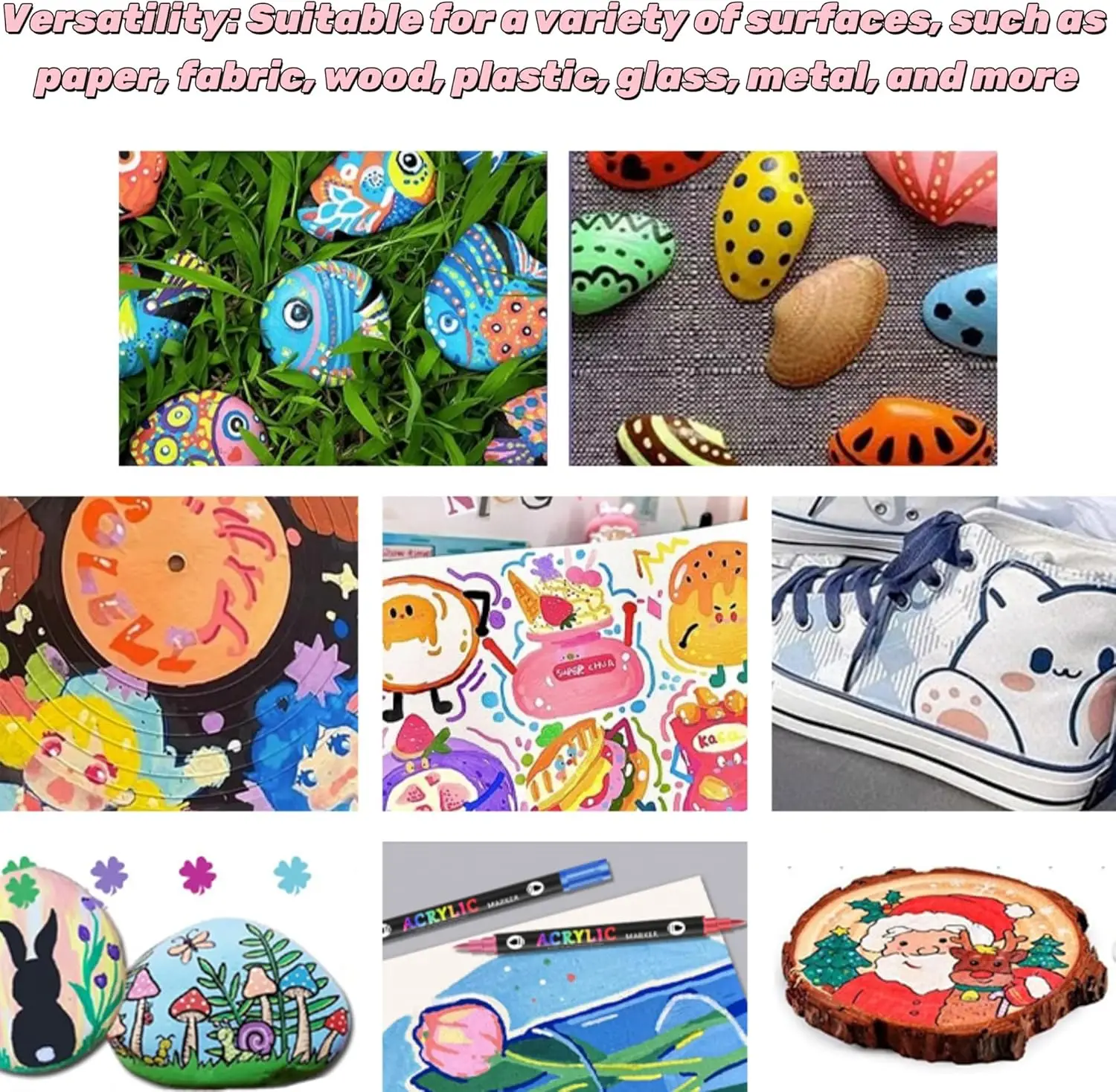 Compatibilità multisuperficie: questi pennarelli a vernice acrilica funzionano perfettamente su carta, tela, legno, vetro, ceramica, metallo e altro ancora. Che si tratti di progetti artistici, artigianato o decorazioni per la casa, sono il tuo compagno creativo perfetto.