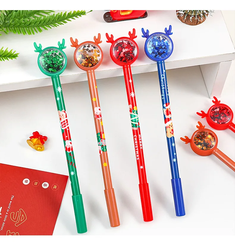 12/60 pezzi creativi penne gel con paillettes alce di Natale Ins ragazza cuore cancelleria natalizia cartone animato carino firma penna a base d’acqua
