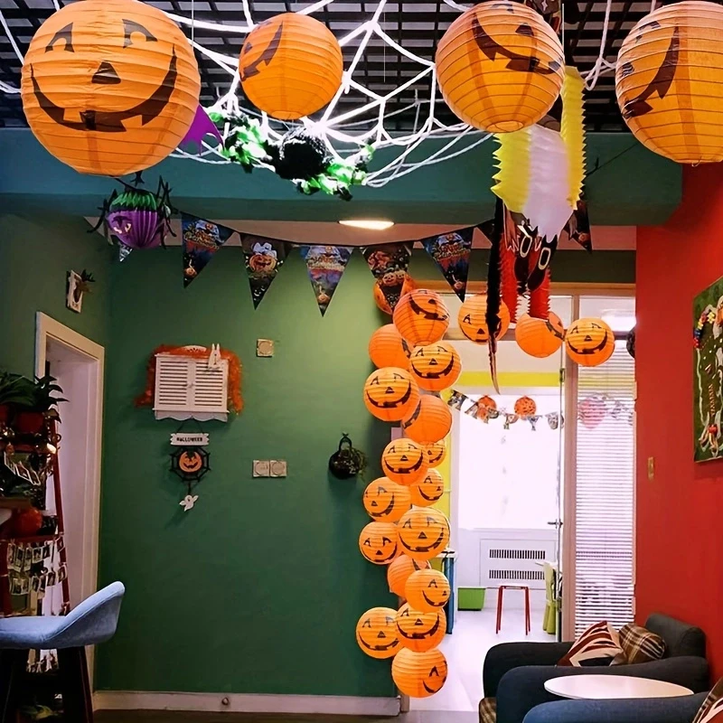 12 pezzi Lanterna di carta zucca di Halloween Lanterna di zucca Jack di Halloween Lanterna di zucca arancione per la festa di Halloween Zucca di Halloween Lanterna di carta sospesa per la decorazione interna ed esterna