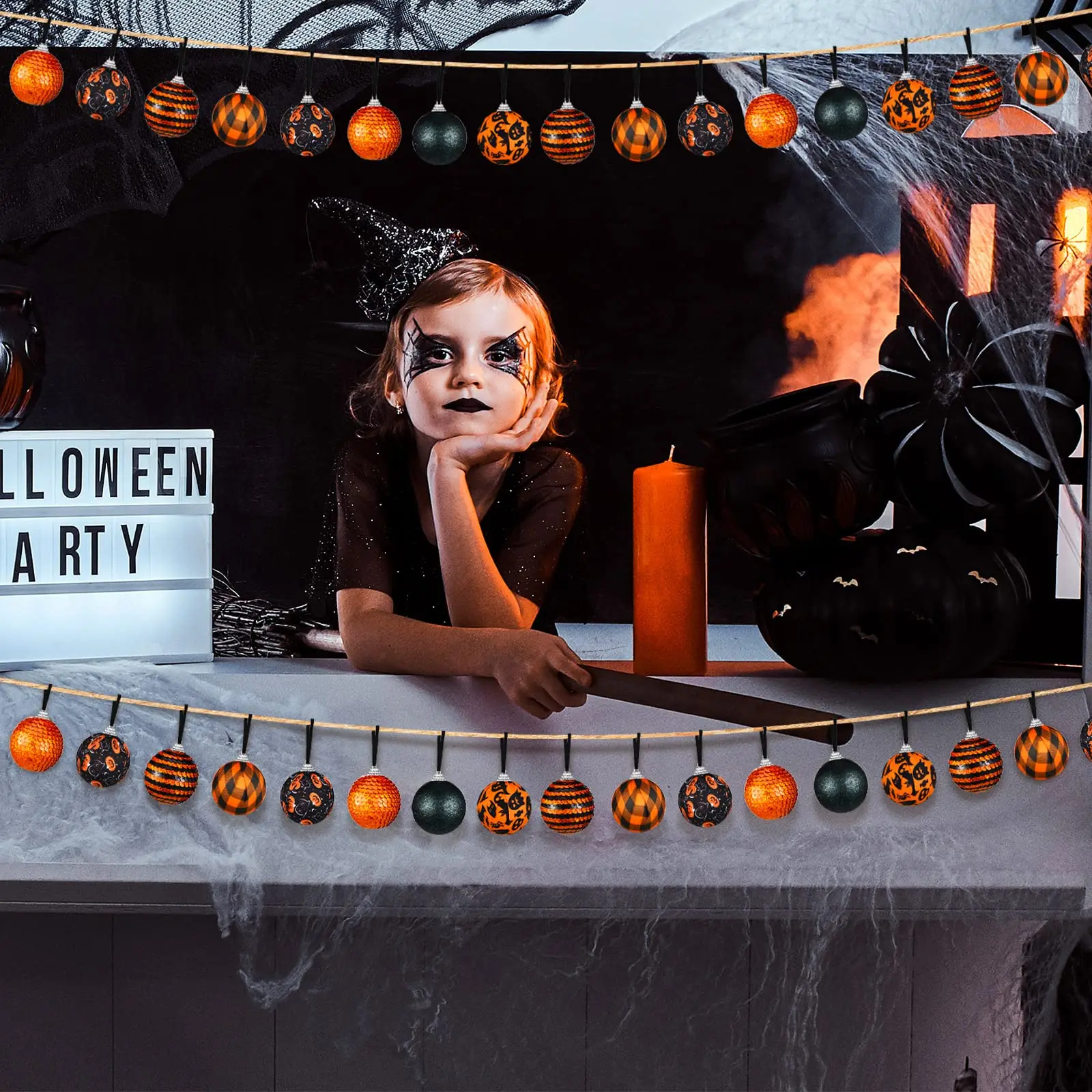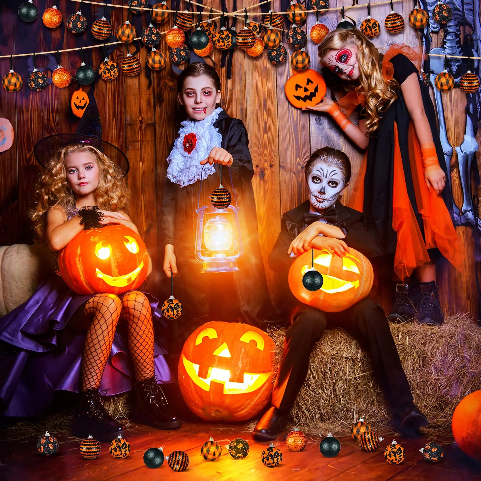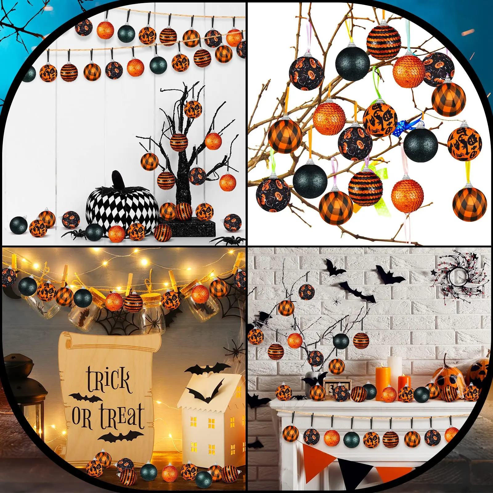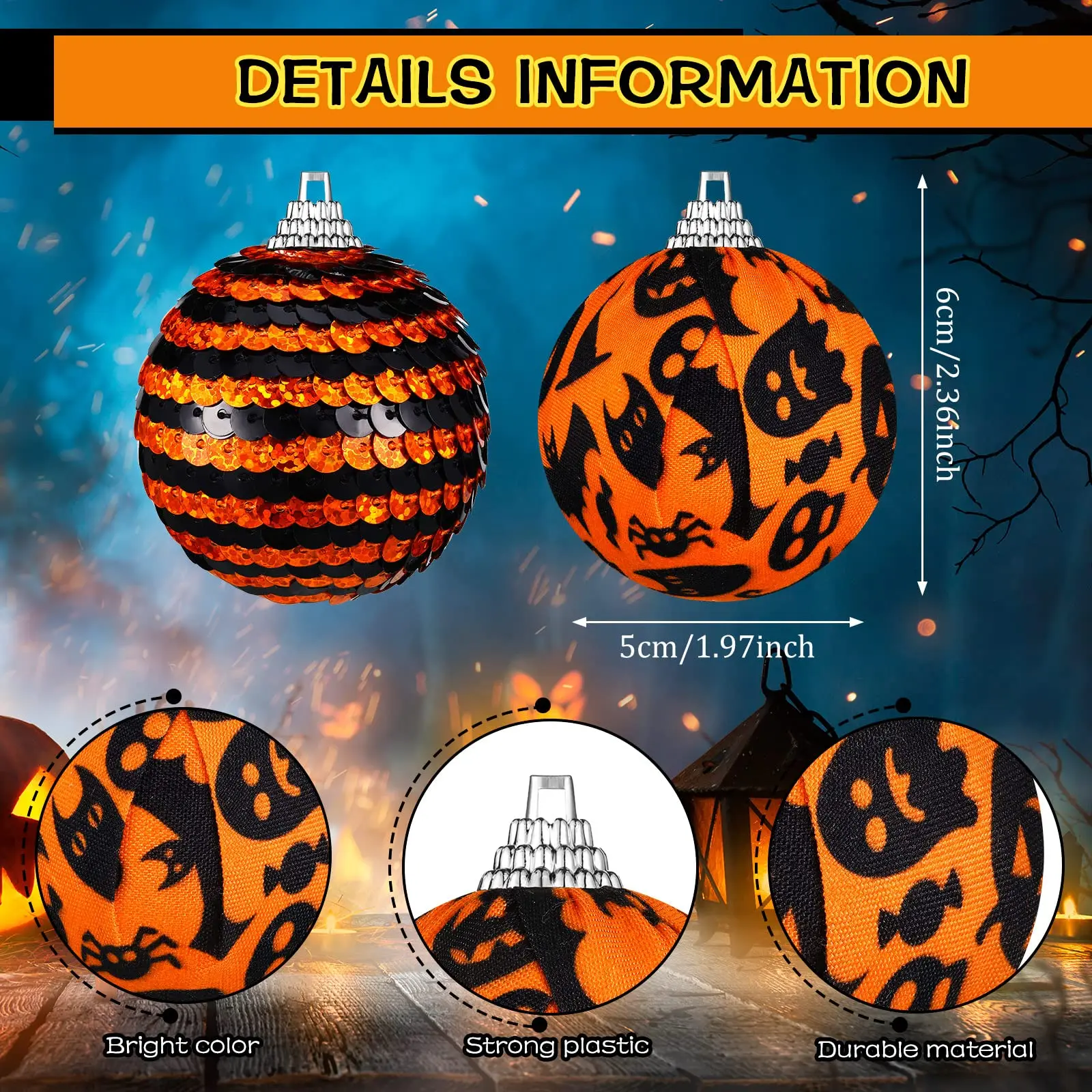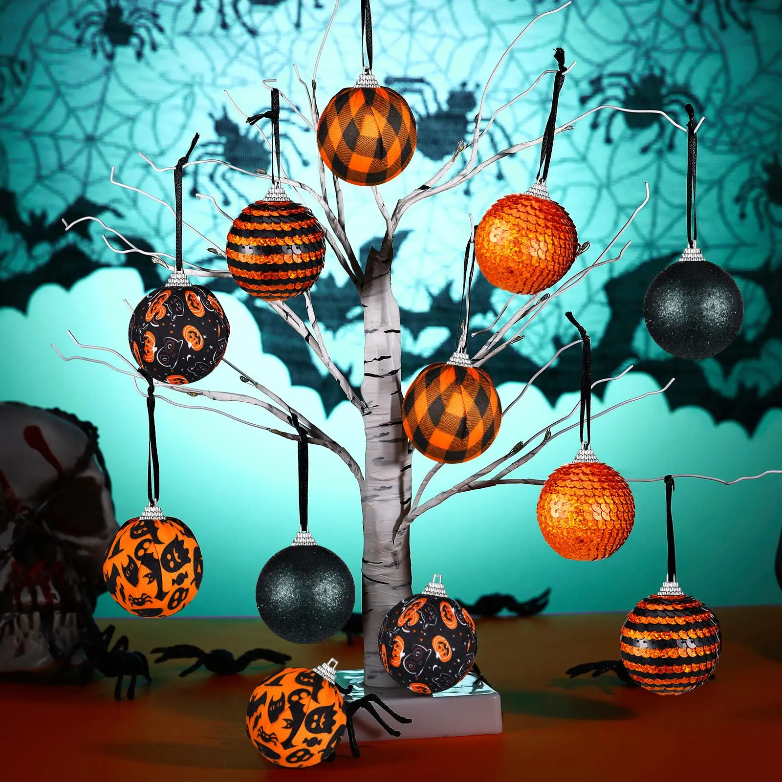 12 Pezzi Ornamento di Halloween per Albero Ornamento di Palla per il Giorno di Halloween Fantasma Glitter Decorazione per Albero con Sfera Nera Arancione per Appendere la Festa