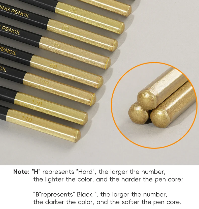 “H” (Durezza): Il numero più alto, il nucleo più difficile e il accendino del colore.