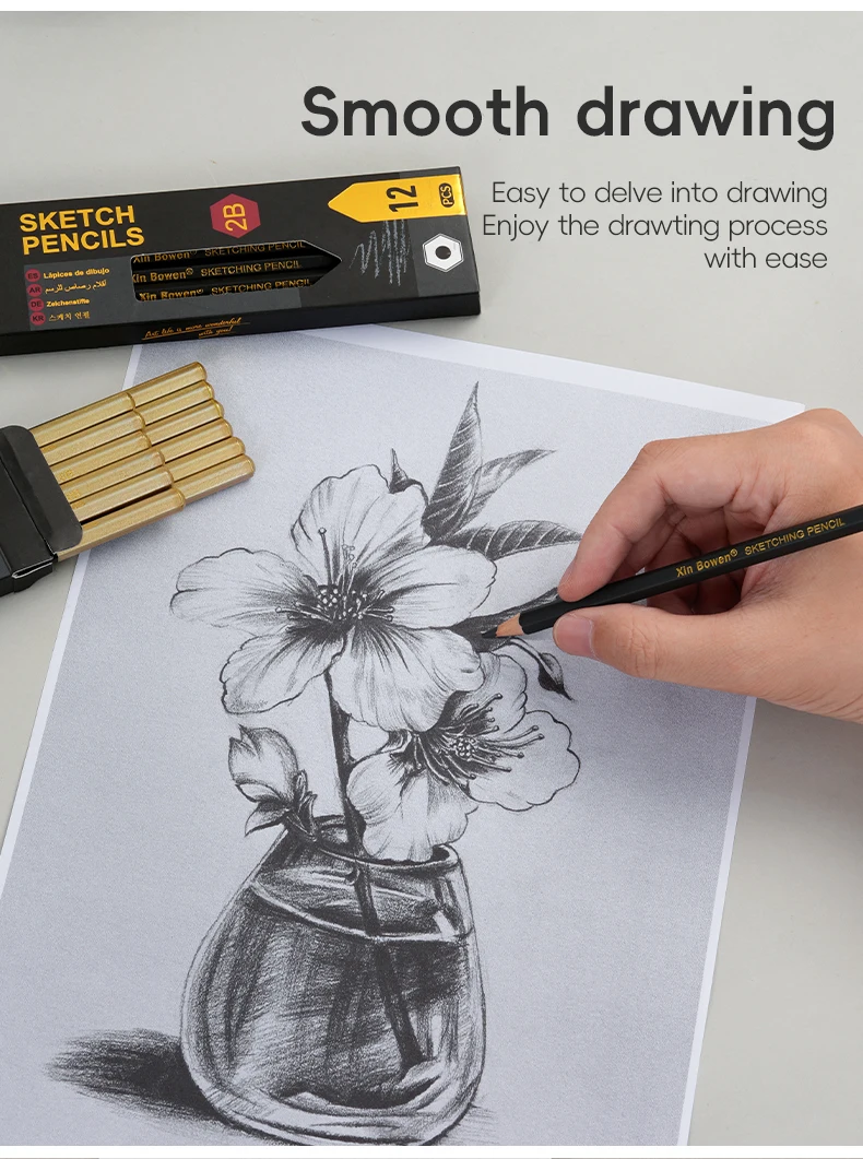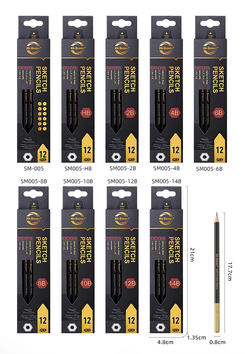 Rim. Ampia gamma di durezza (F a 14B) per ombreggiatura, miscelazione e dettagli.