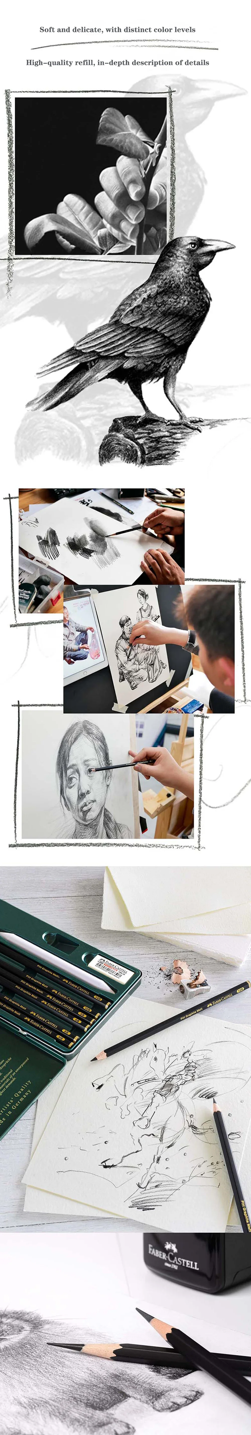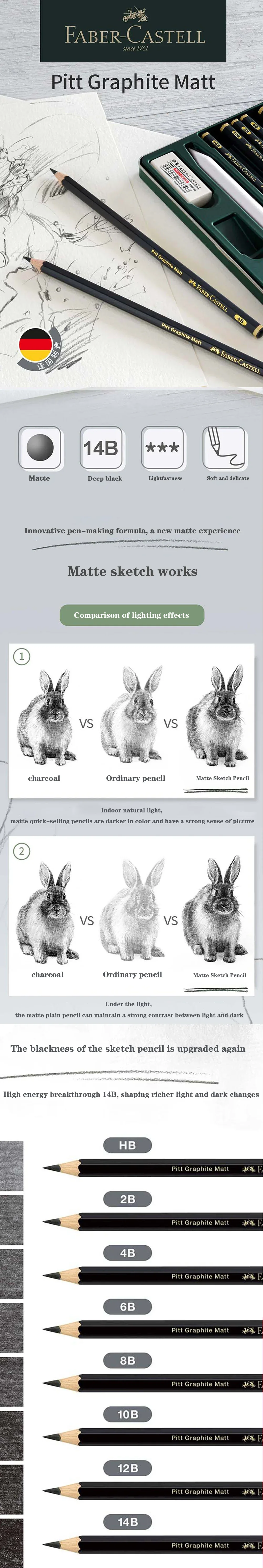 Nome del prodotto: FABER-CASTELL Modello: pitt opaca schizzo a matita Tipo di imballaggio: confezione di cartone (12 pezzi per scatola) Classificazione di colore: HB/ 2B/ 4B/ 6B/ 8B/ 10B/ 12B/ 14B/