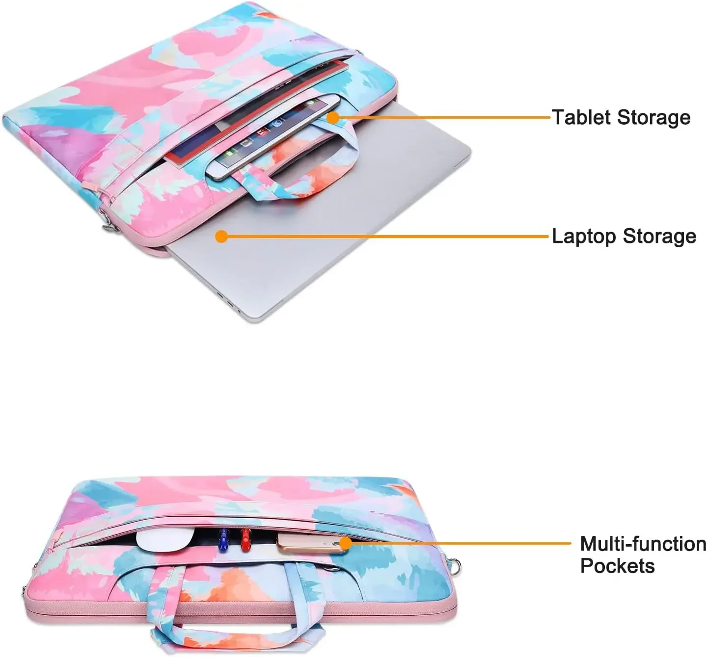 Il resistente materiale in poliestere marmo protegge il tuo dispositivo da acqua, polvere, sporco e graffi.La cerniera di caricamento superiore sulla borsa a tracolla consente uno scorrimento fluido e un comodo accesso.