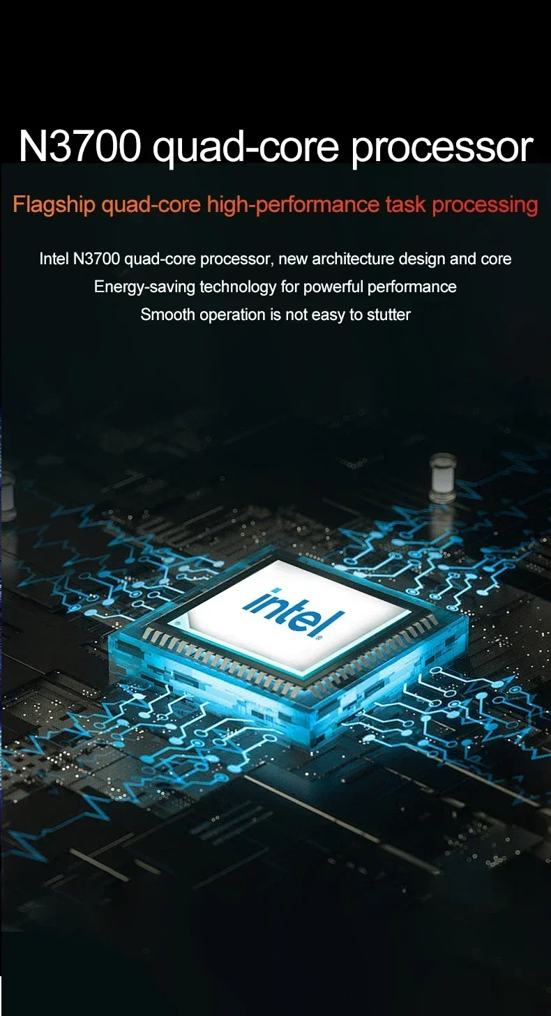 3) Processore Intel N3700 quad-core quad-thread fino a 1,6 GHz,