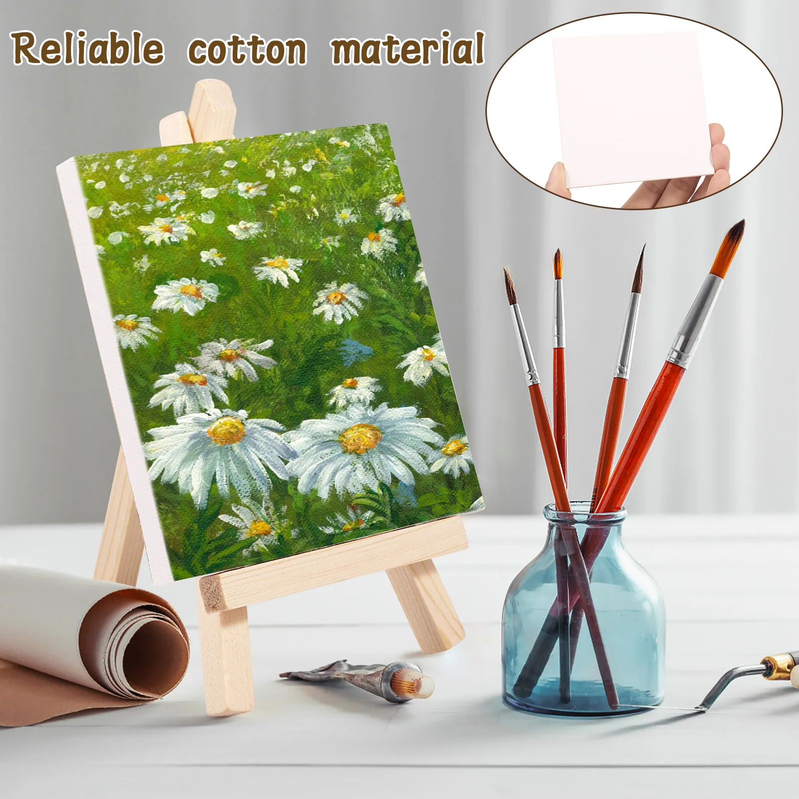 Parts List:14 x Small Easel with CanvasHighlight Description:[Wooden Mini Easel Set] Our painting set includes 14pcs mini easels with canvas, plenty of quantity to meet your use and replacement needs.[Reliable Canvas] Our mini painting canvas is made of cotton with acid-free primer for quick painting, the canvas is stable with a flexible surface, allowing you to enjoy a smooth and enjoyable painting experience.[Foldable Easel] Easel size is 8x15cm, canvas size is 10 x 10cm, easy to hold and paint, lightweight and foldable, easy to carry to classrooms, art clubs, painting studios, painting events and more.[Enjoy the Fun of Painting] Mini canvas painting set is suitable for children, painting beginners and amateurs, help them practice painting, improve their skills and enjoy the fun of painting. Can be used as gifts, rewards, painting classes and school art project supplies.[Multi-Purpose] Our art easels and art canvases are suitable for many occasions, it is a reasonable choice for displaying small paintings, crafts, miniatures, children’s artwork, photos, business cards, beautiful pictures, suitable for children’s art activities, parties, holidays, weddings, family.Specification:Product name: Mini Canvas Painting KitMaterial: wood, cottonSize: Easel 8 x 15cmCanvas: 10 x 10cmNotes:1. There may be slight differences between the picture and the actual color of the commodity. We will try our best to show you the exact color.2. Please allow slight dimension difference due to manual measurement.
