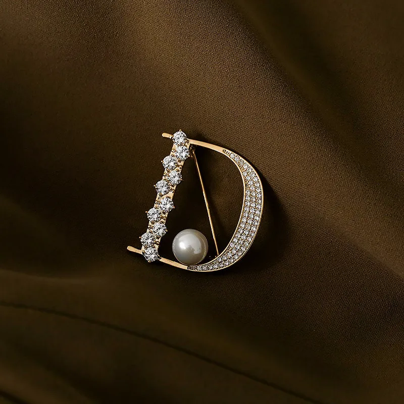 14K placcato oro corea nuovo Design gioielli di moda di lusso perla zircone lettera D spilla eleganti accessori da lavoro quotidiano da donna 114K placcato oro corea nuovo Design gioielli di moda di lusso perla zircone lettera D spilla eleganti accessori da lavoro quotidiano da donna