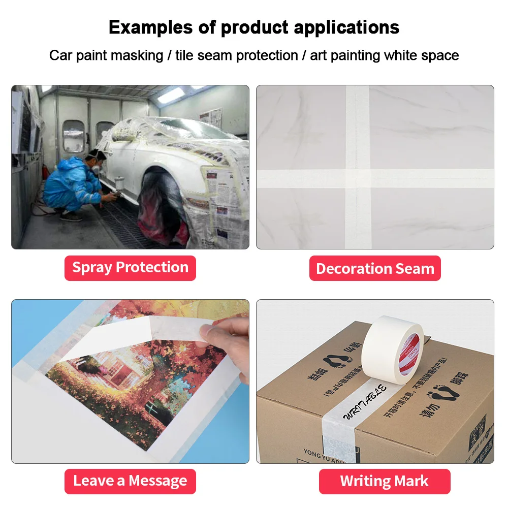 Nastro per mascheratura per pittura automobilistica Nastro di carta Washi Resistente alle alte temperature Nessuna traccia Nastro adesivo in crêpe autoadesivo senza residui