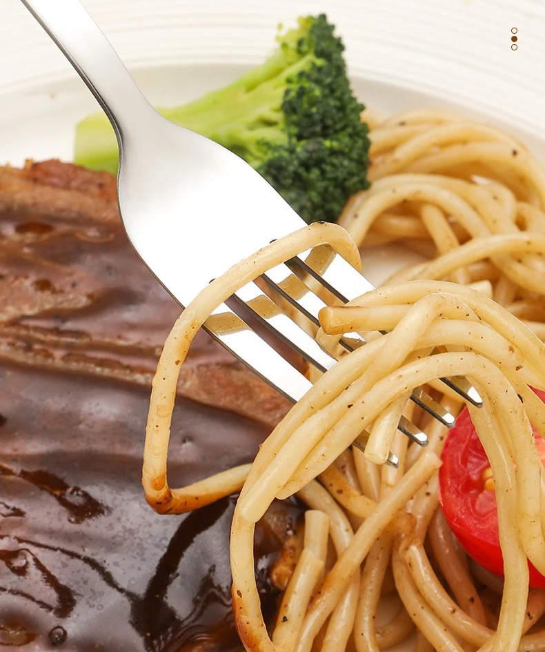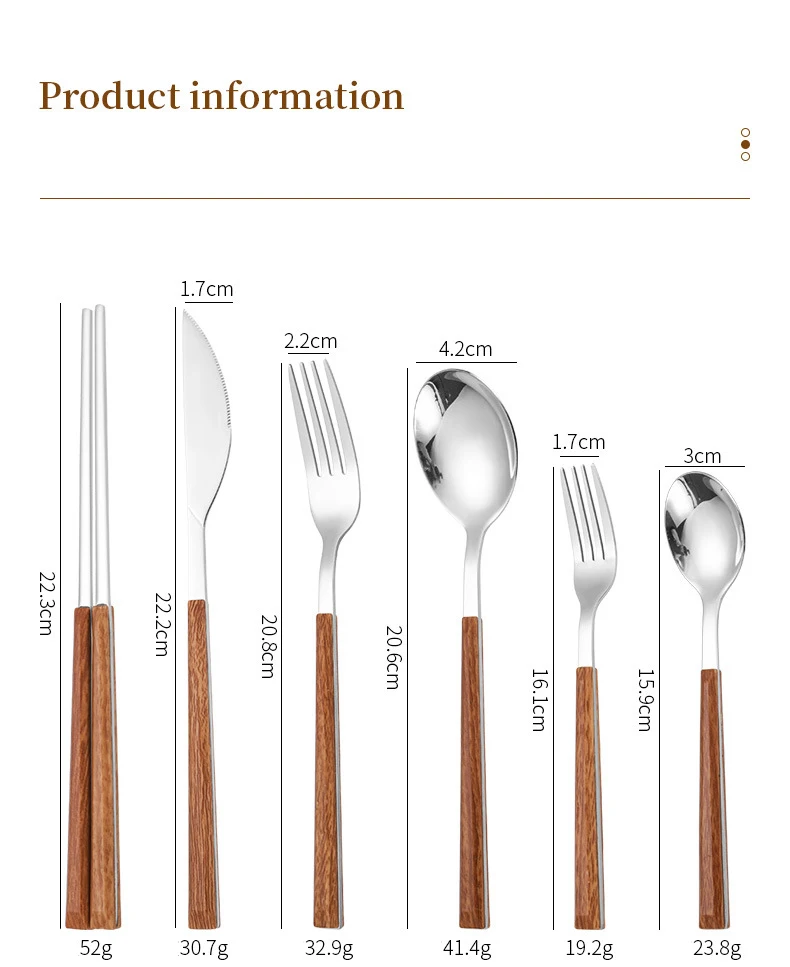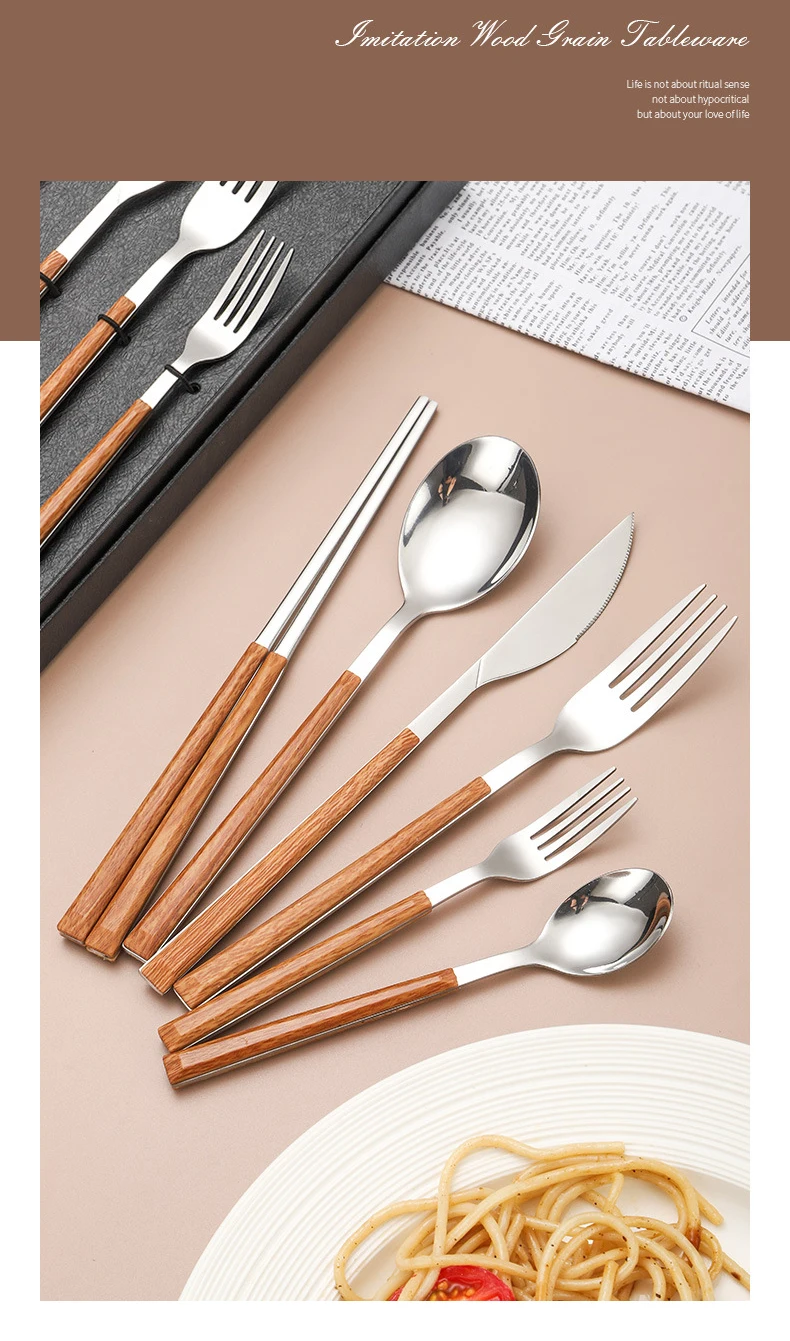 Le stoviglie sono realizzate in acciaio inossidabile di alta qualità resistente e antiruggine. Manico per vernice: non è consigliato l’uso di filo/tampone di decontaminazione ruvido per pulire. Non utilizzare detergenti corrosivi forti e mantenere le stoviglie asciutte. Adatto a famiglie, feste, hotel, ristoranti, regali, compleanni, viaggi in campeggio.