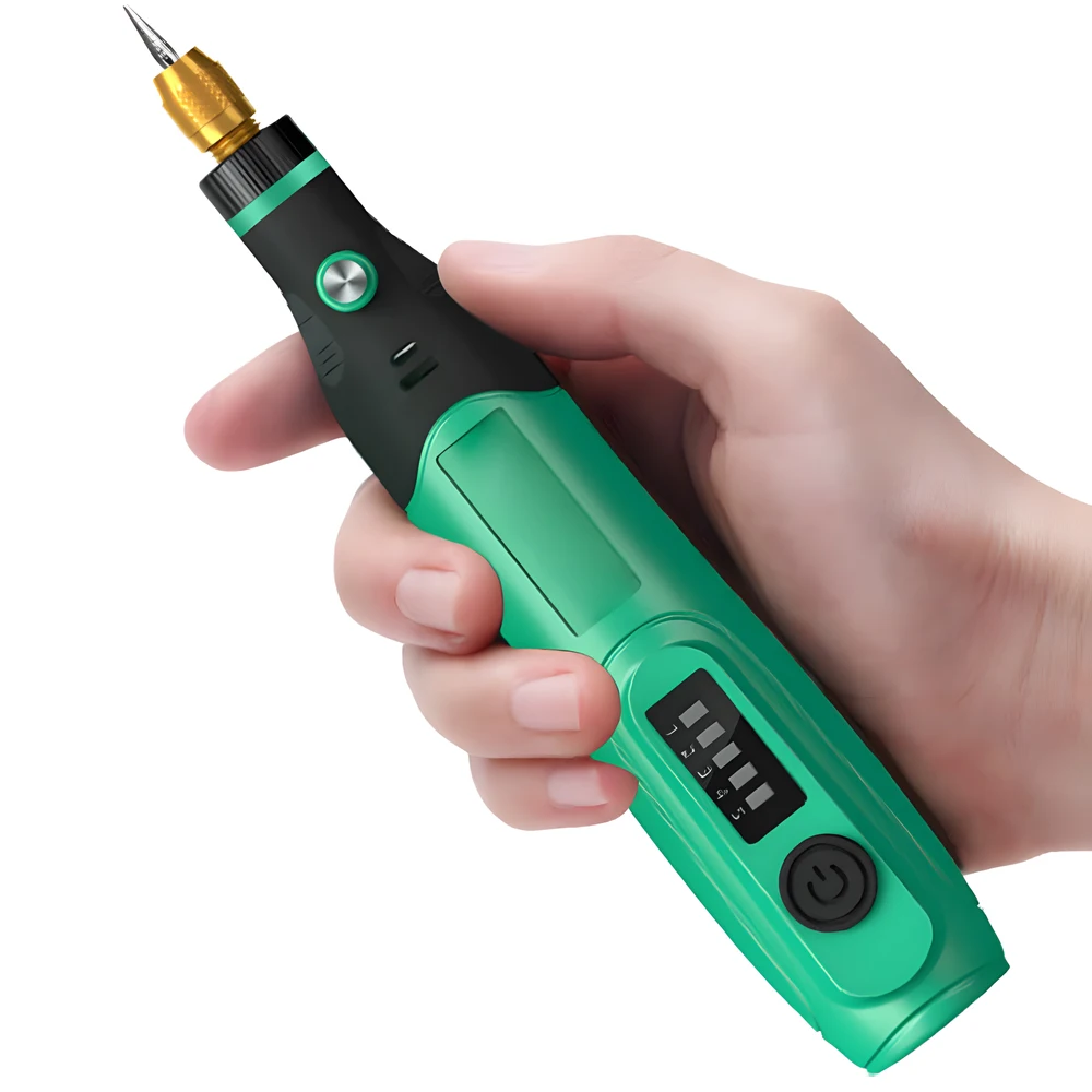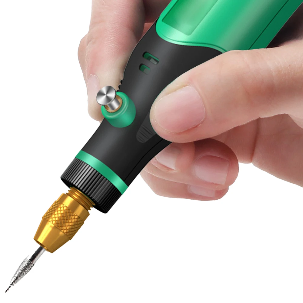Descrizione della caratteristica: Mini modello (con regolazione della velocità infinita), facile da usare, di piccole dimensioni, design intuitivo, confortevole, resistente all’usura, antiscivolo e di piccole dimensioni, adatto per operazioni di intaglio su piccola scala