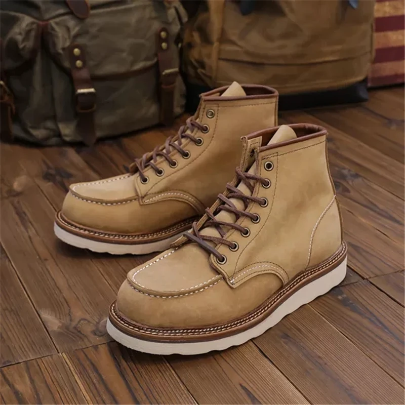 1907 Scarpe da uomo vintage unisex Stivaletti fatti a mano Autunno Inverno Scarpe in pelle di mucca Ali Stivali da moto con punta tonda