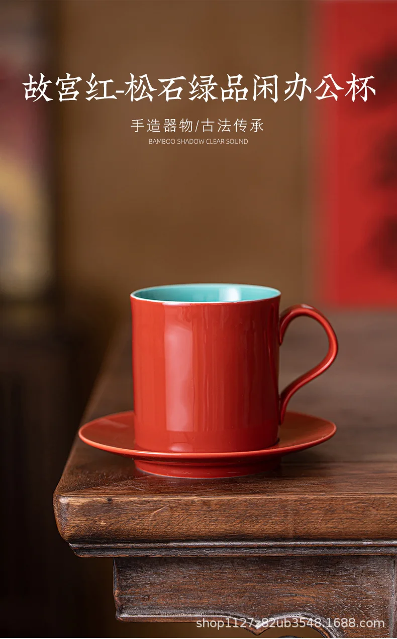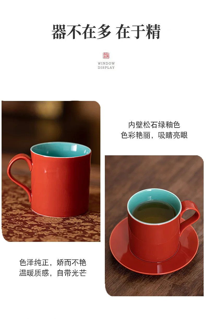 190ml Nuovo Cinese Rosso Tazza di Caffè Con Piatto Coppia Impugnatura Tazze Tè pomeridiano Tazza Tazza Piattino Kit Ufficio Tazza di Acqua Drinkware