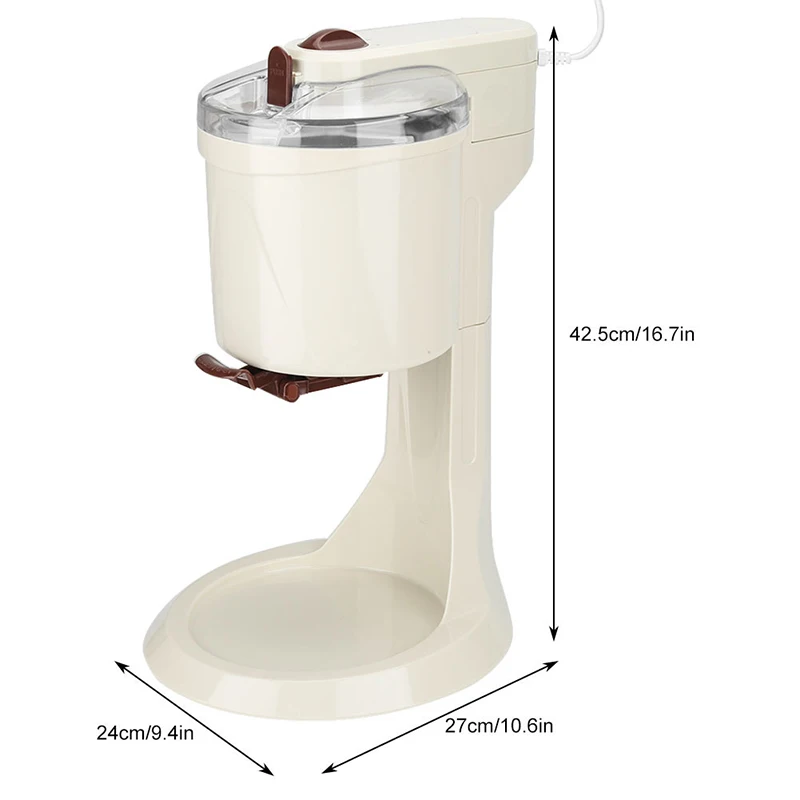 4, facile da usare, metti il contenitore interno nel frigorifero per 12 ore, la temperatura deve essere bassa as -18 ℃. Quindi preparare 100 grammi di gelato in polvere e 300 ml di latte e mescolare bene. Accendi la macchina prima di posizionare i materiali. La macchina si mescola per 10 minuti, quindi il gelato può essere fatto.