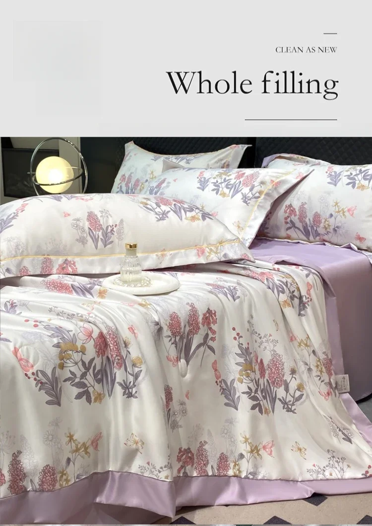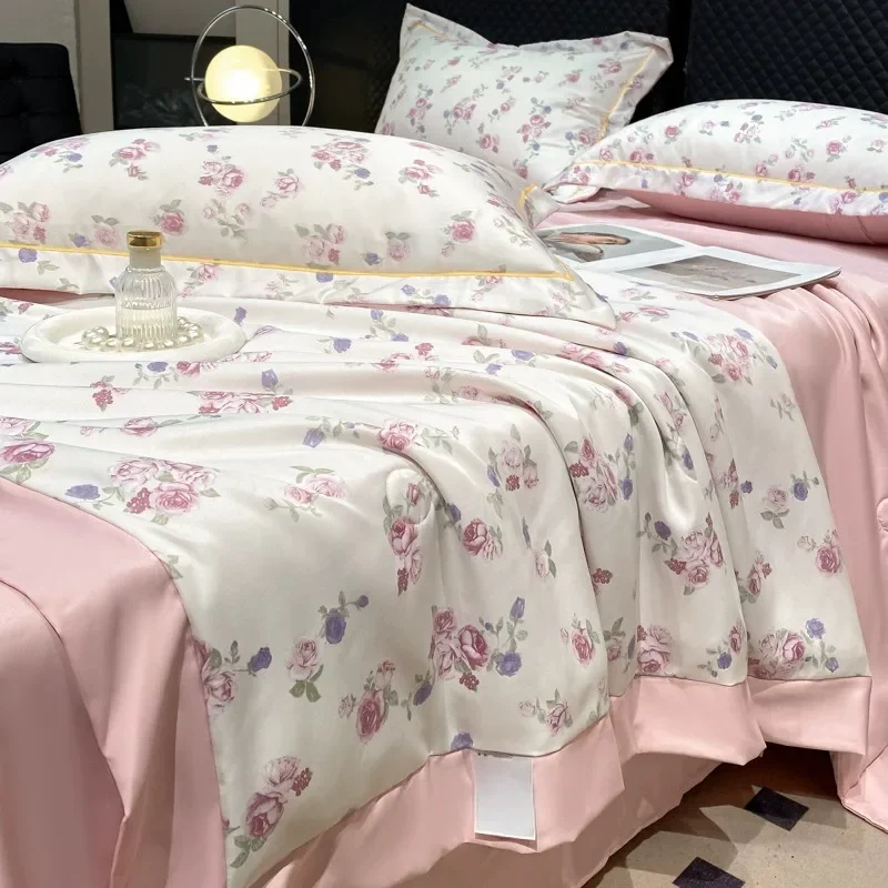 2025 nuova trapunta estiva trapuntata in poliestere trapuntata, delicata sulla pelle, lavabile, leggera, stile di lusso, leggera, stampata a fiori