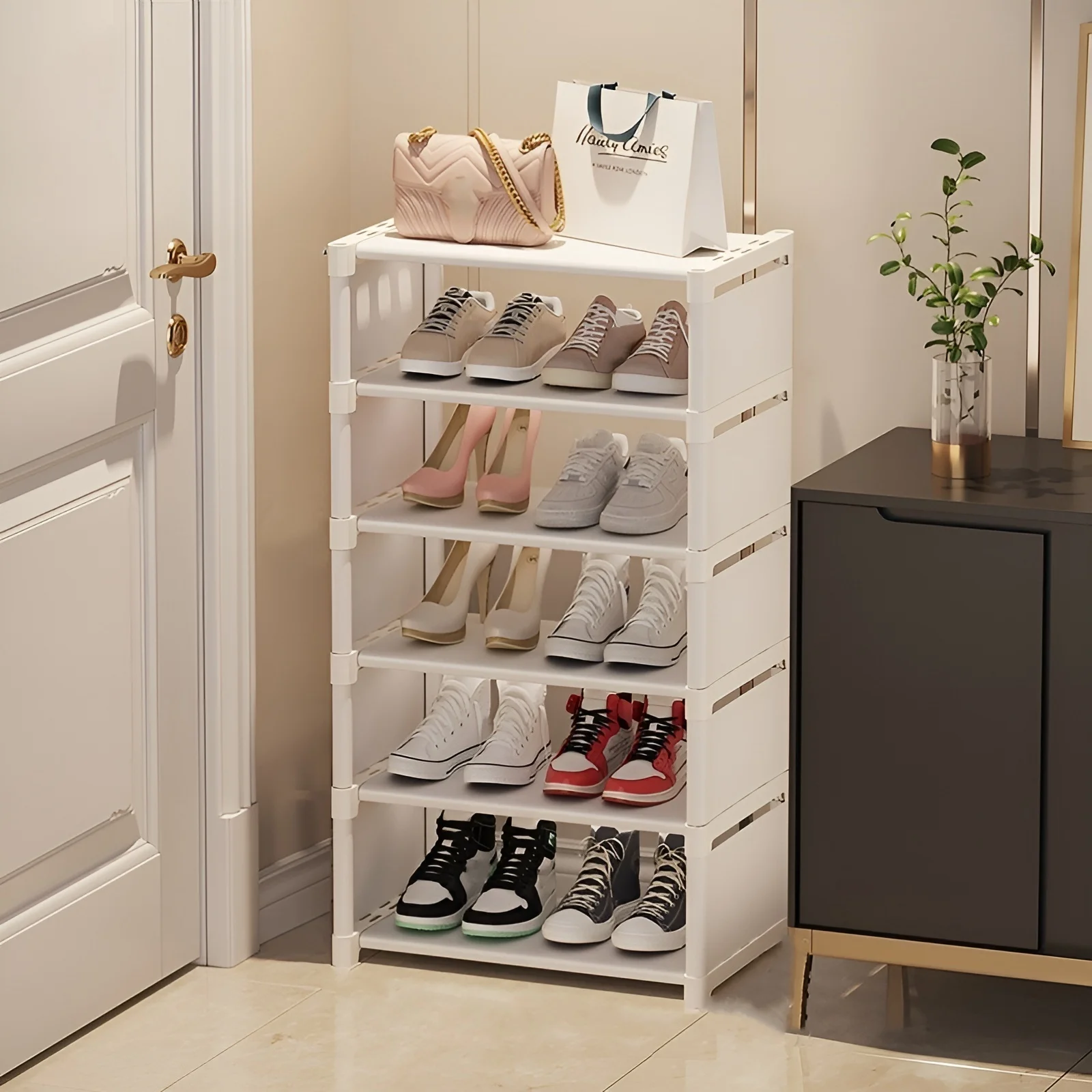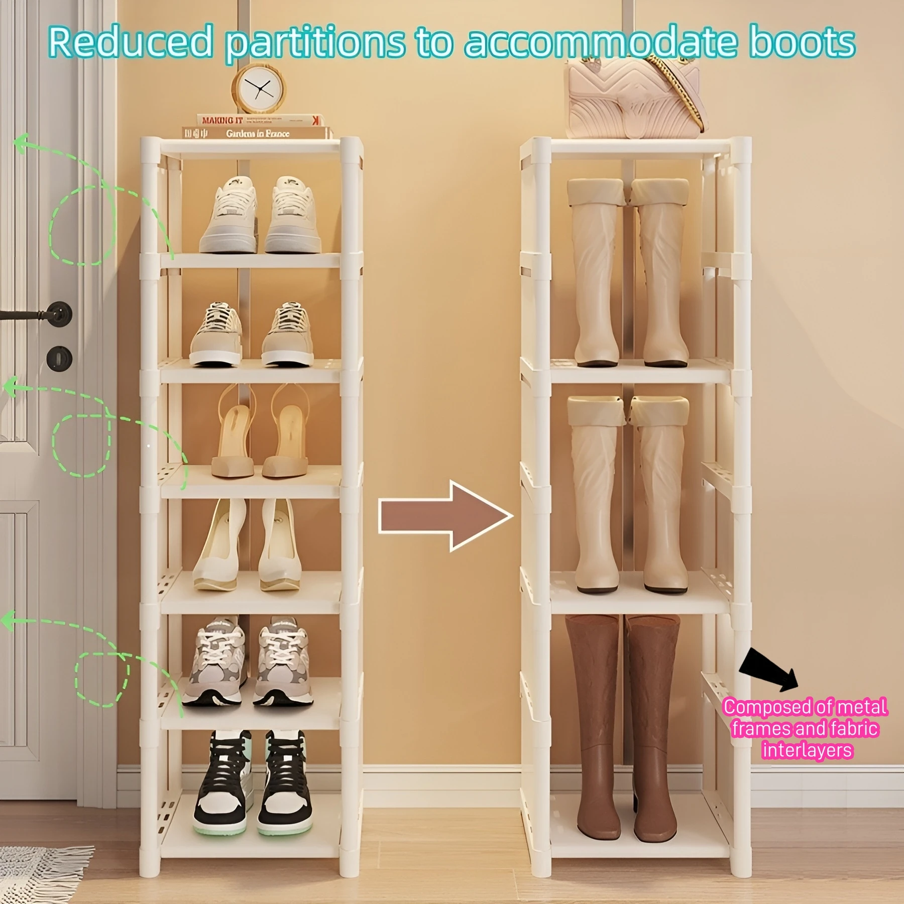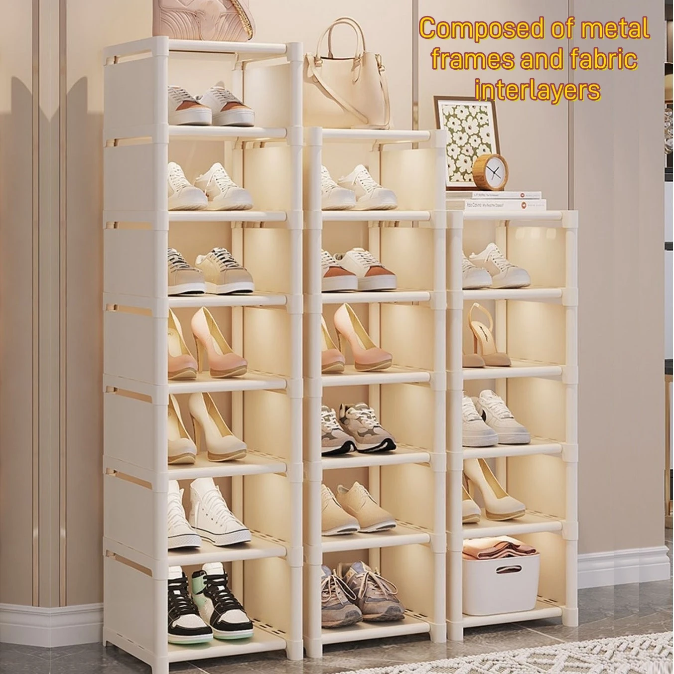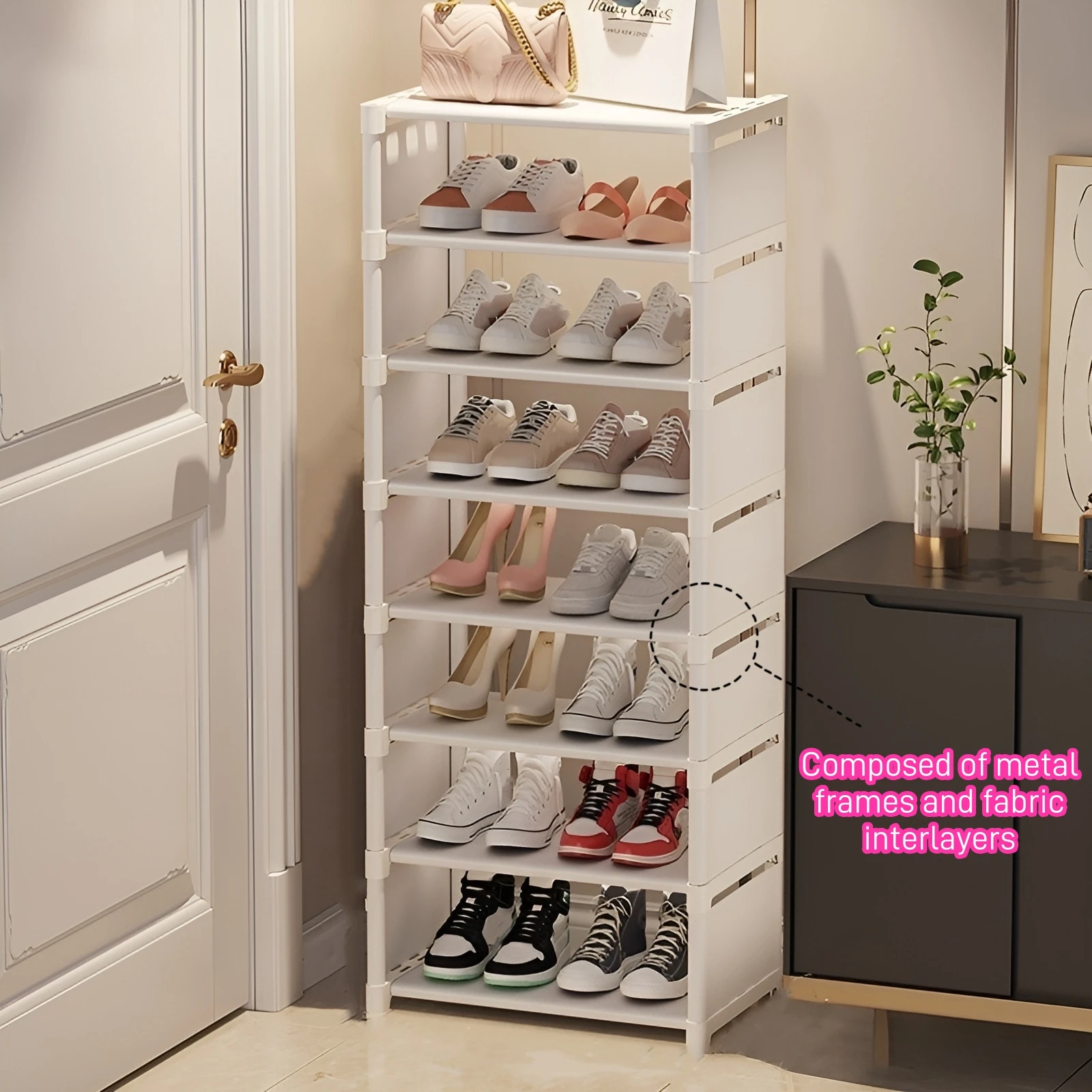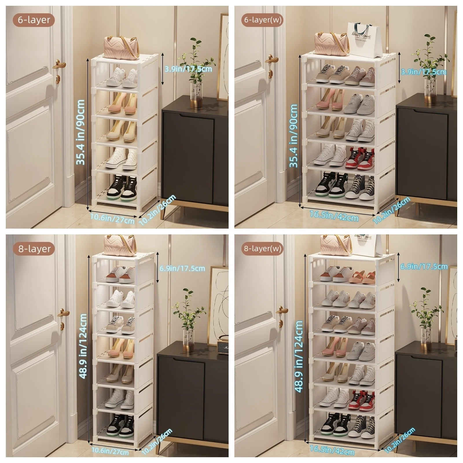 Questo organizzatore di scarpe presenta un design 6/8 strati, fornendo ampio spazio per le tue calzature. È perfetto per chi ha molte paia di scarpe.