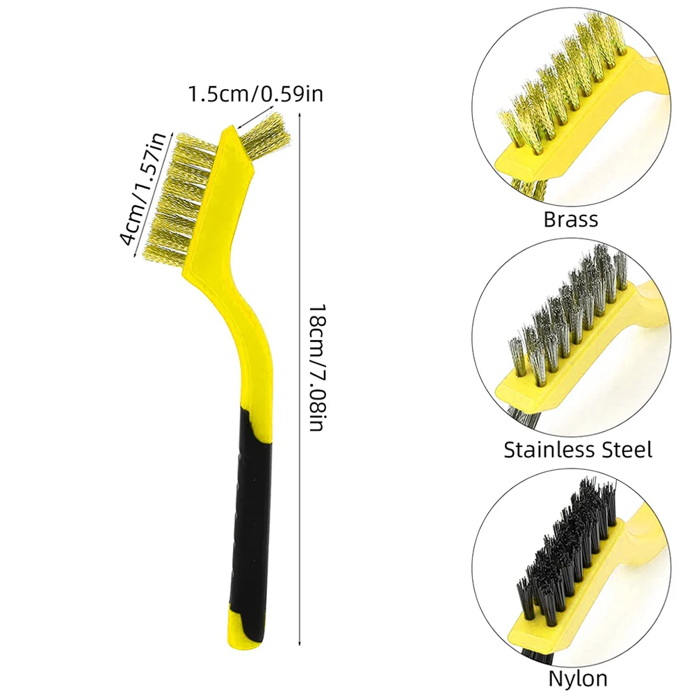 la spazzola in ottone è adatta per la pulizia aggressiva delle superfici metalliche senza graffi, la spazzola in acciaio inossidabile per la rimozione della ruggine abrasiva e la spazzola in nylon morbido per la pulizia delicata degli elettrodomestici,