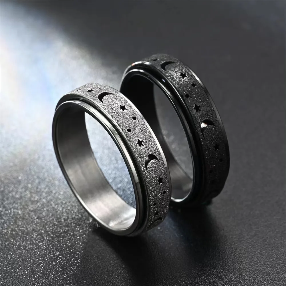 1Pc Anelli rotanti rotanti in acciaio inossidabile per donna Uomo 6MM Design ruotabile Luna e stella Design Anello di moda Gioielli da dito