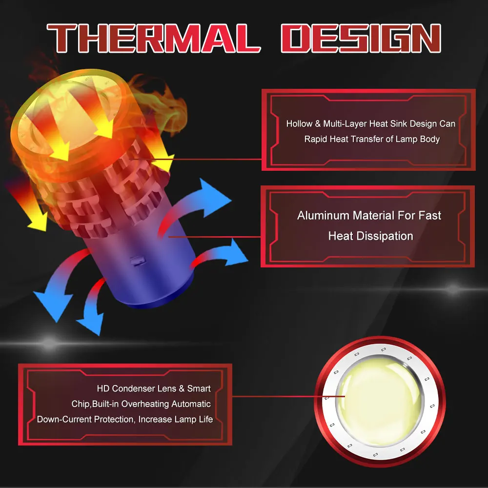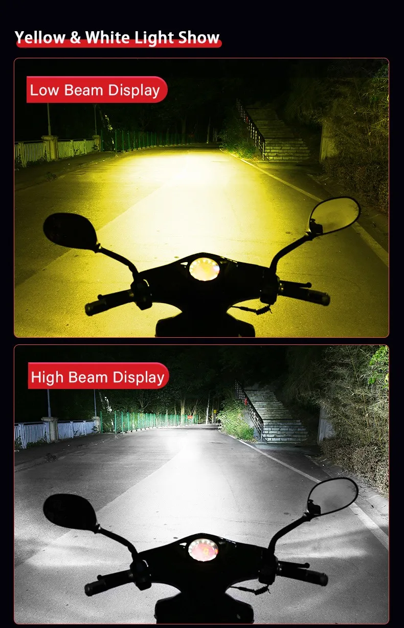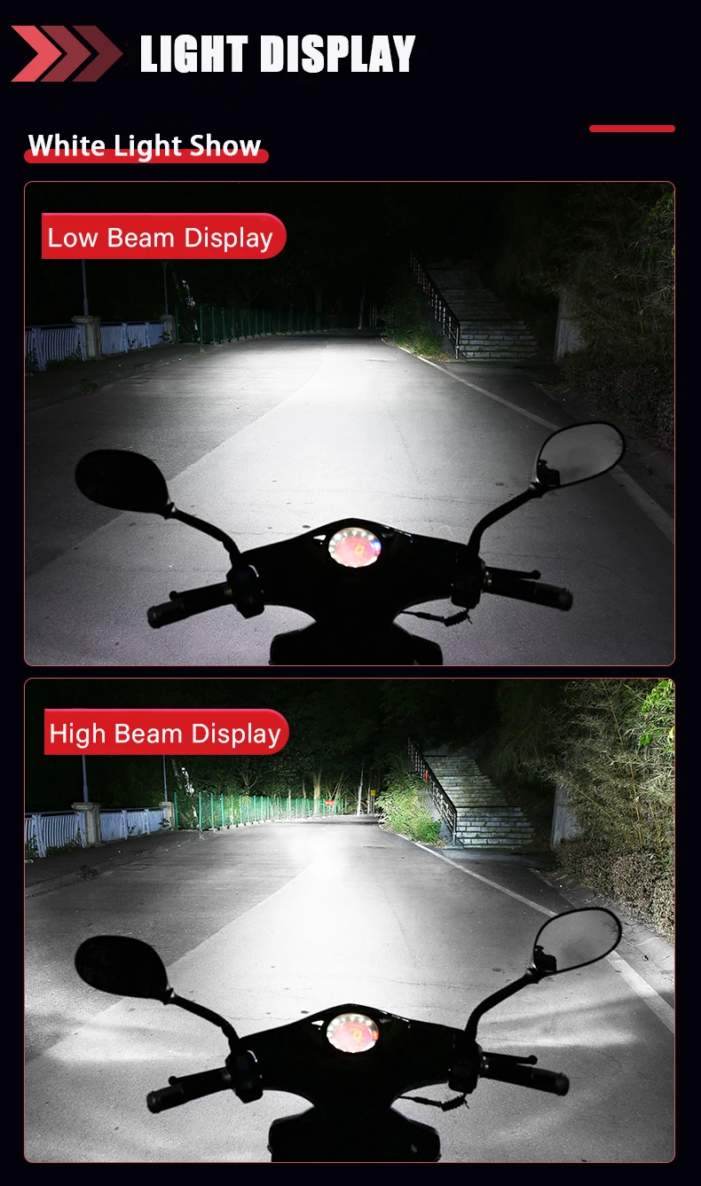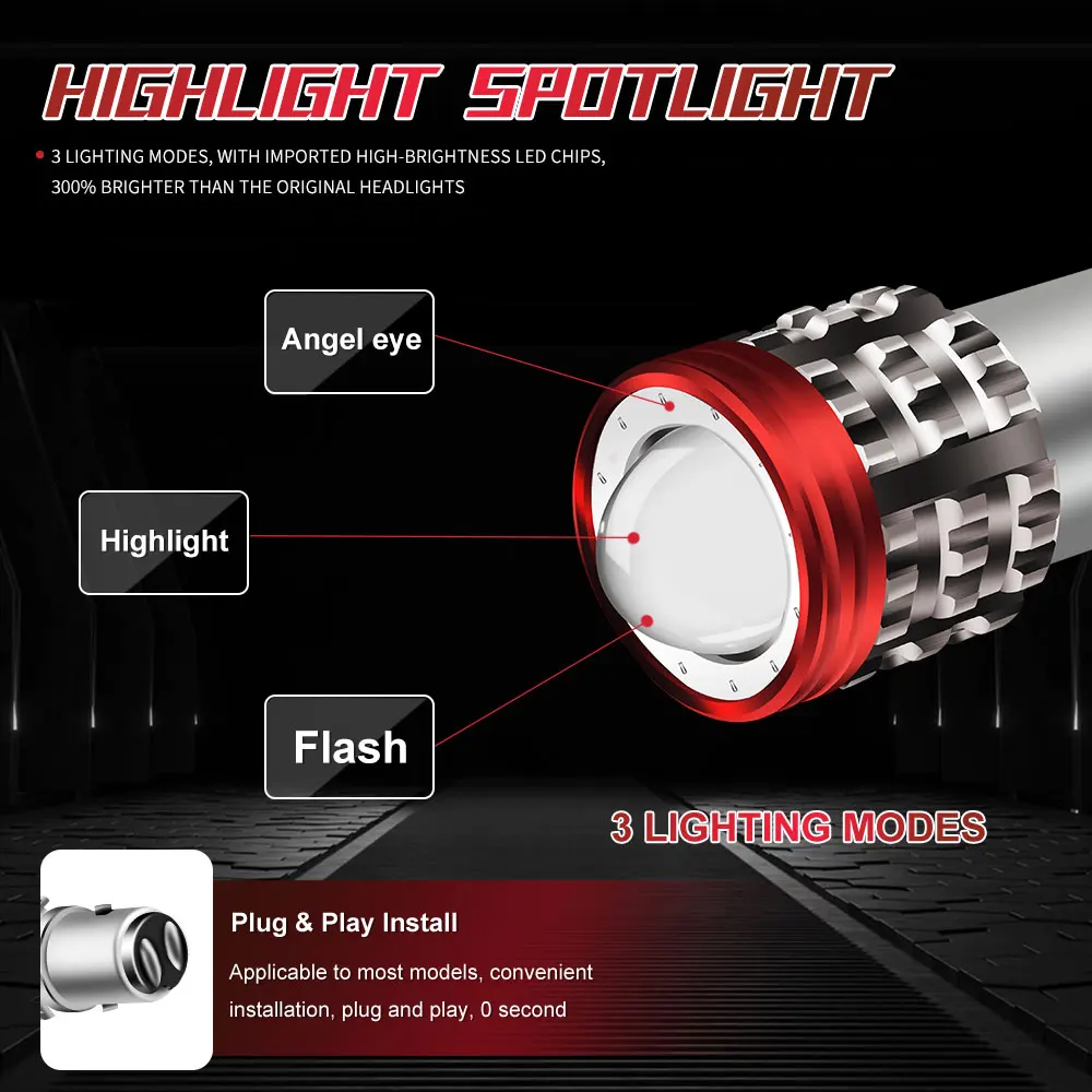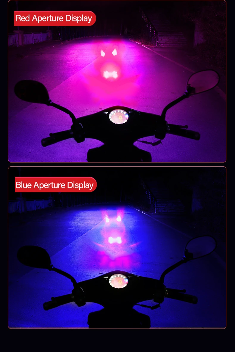 1.Alta concentrazione di luce ad alta potenza: con il design del cerchio dell’angelo, luce di apertura + flash a raffica + occhio del diavolo, questa lampada frontale per moto offre una visione luminosa e chiara, migliorando la sicurezza durante le corse notturne;