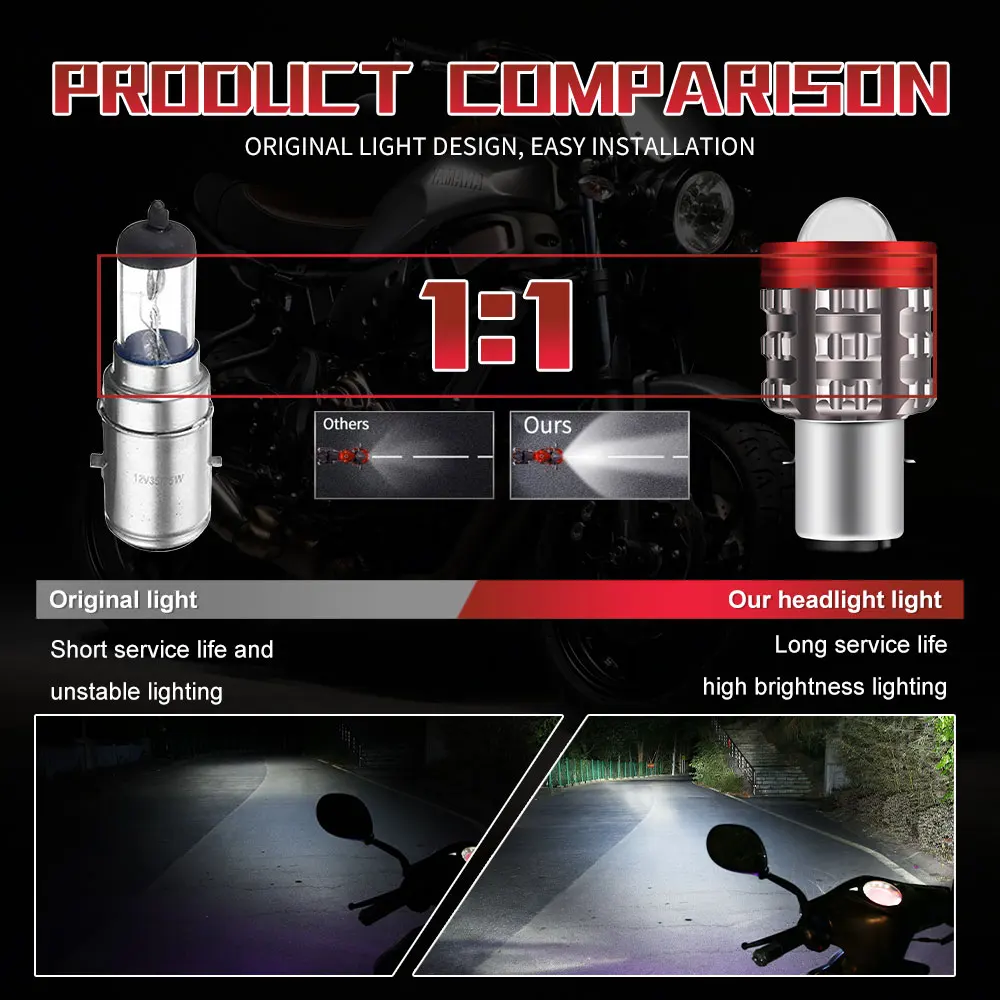 1PC faro LED per moto per H4 H6 BA20D luce di alimentazione anello occhio d’angelo abbagliante anabbagliante lampada frontale moto lampadina bianca gialla 80V